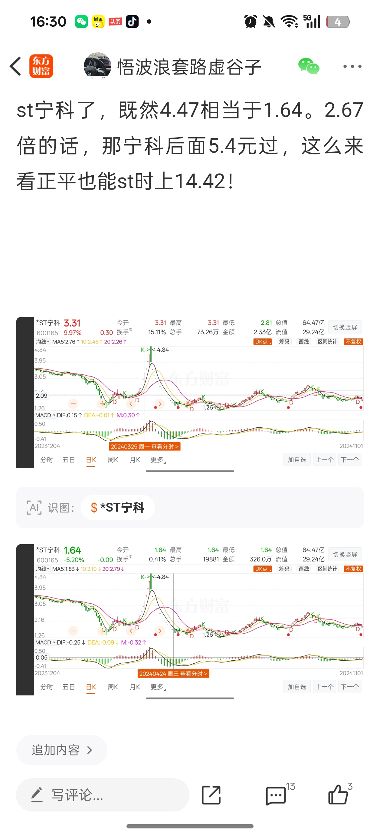 $*ST正平(SH603843)$ 但凡你们相信我昨天的正平是前面模仿亚振,最近一个月是模仿宁科!你都不会今天损失很多仓位!!!!但是模仿这东西不可能100%复刻,模仿个50-70%也还是有很高的参考价值!那既然我都说了,今天是最后一个跌停!为啥我今天不加仓呢?这主要是上午的做盘做的太漂亮了,这也是担心相似度没那么高吧。但至于我没有减仓>15%。