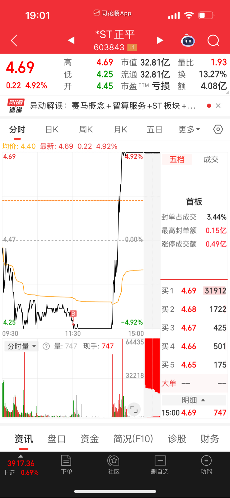 $*ST正平(SH603843)$ 我回来了