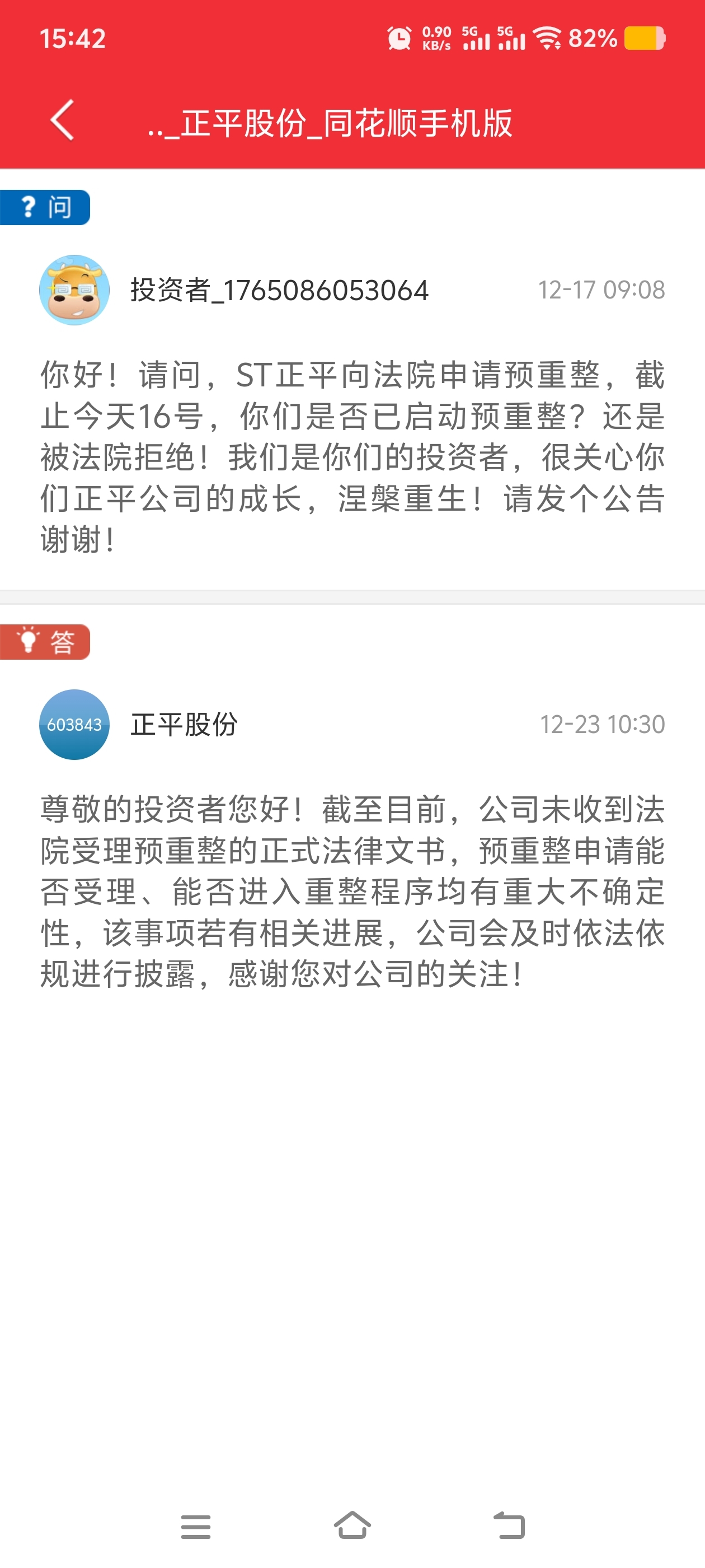 $*ST正平(SH603843)$ 看吧,人家还是说没收到我怀疑这就是个幌子。毕竟公开平台说没收到,后面如果公告有,被人抓到时间在回复前,是可以起诉他们公司的,那只能说是没有公告