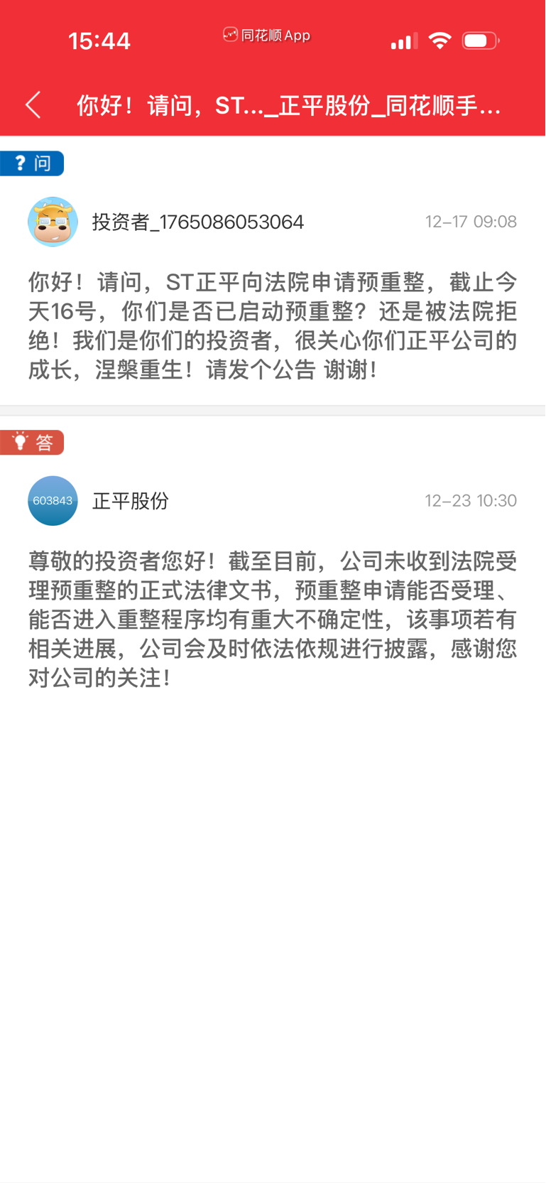 $*ST正平(SH603843)$ 明天看来还是跌停,董秘又出来补刀了