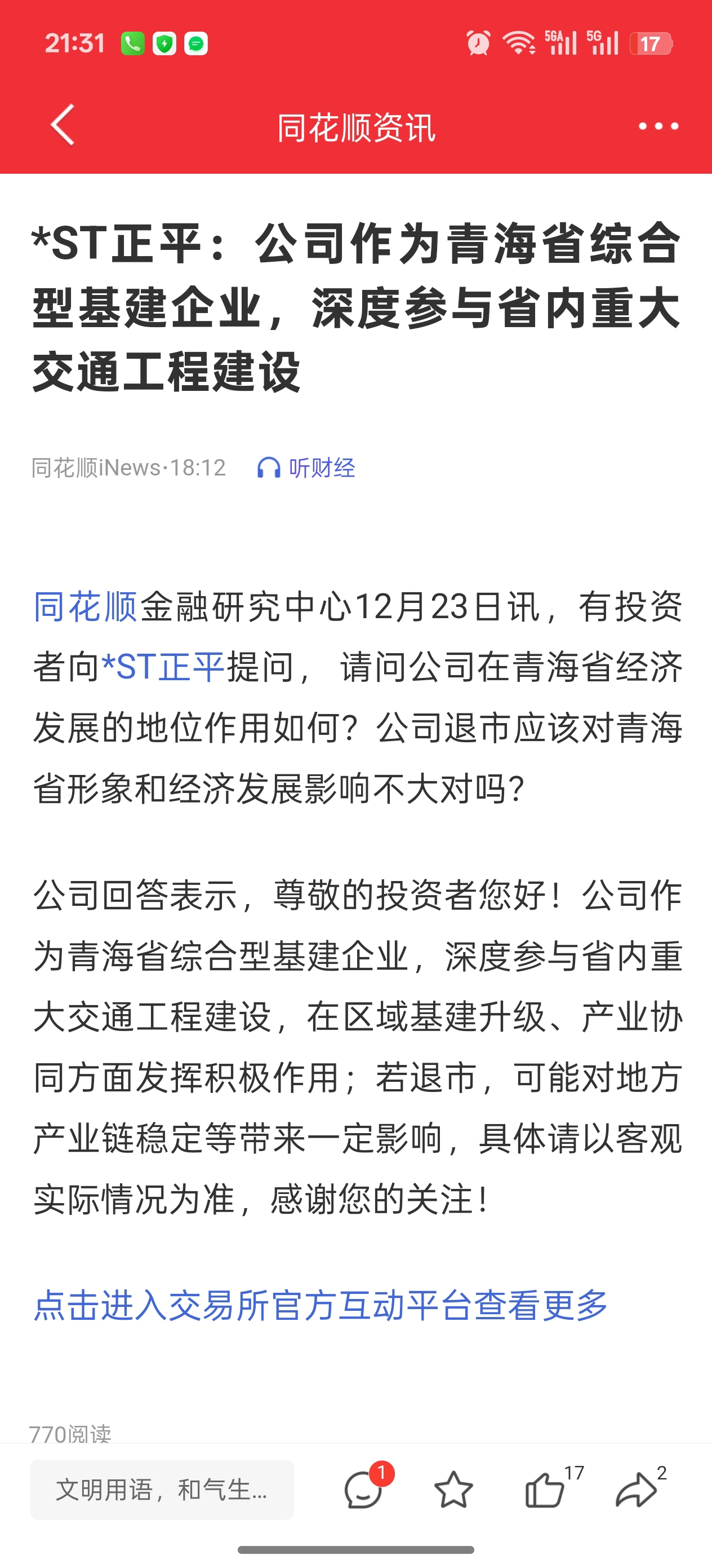 今天更新的21条董秘回复,现在删除了17条,只剩4条了。虽然你删了,但是同花顺的