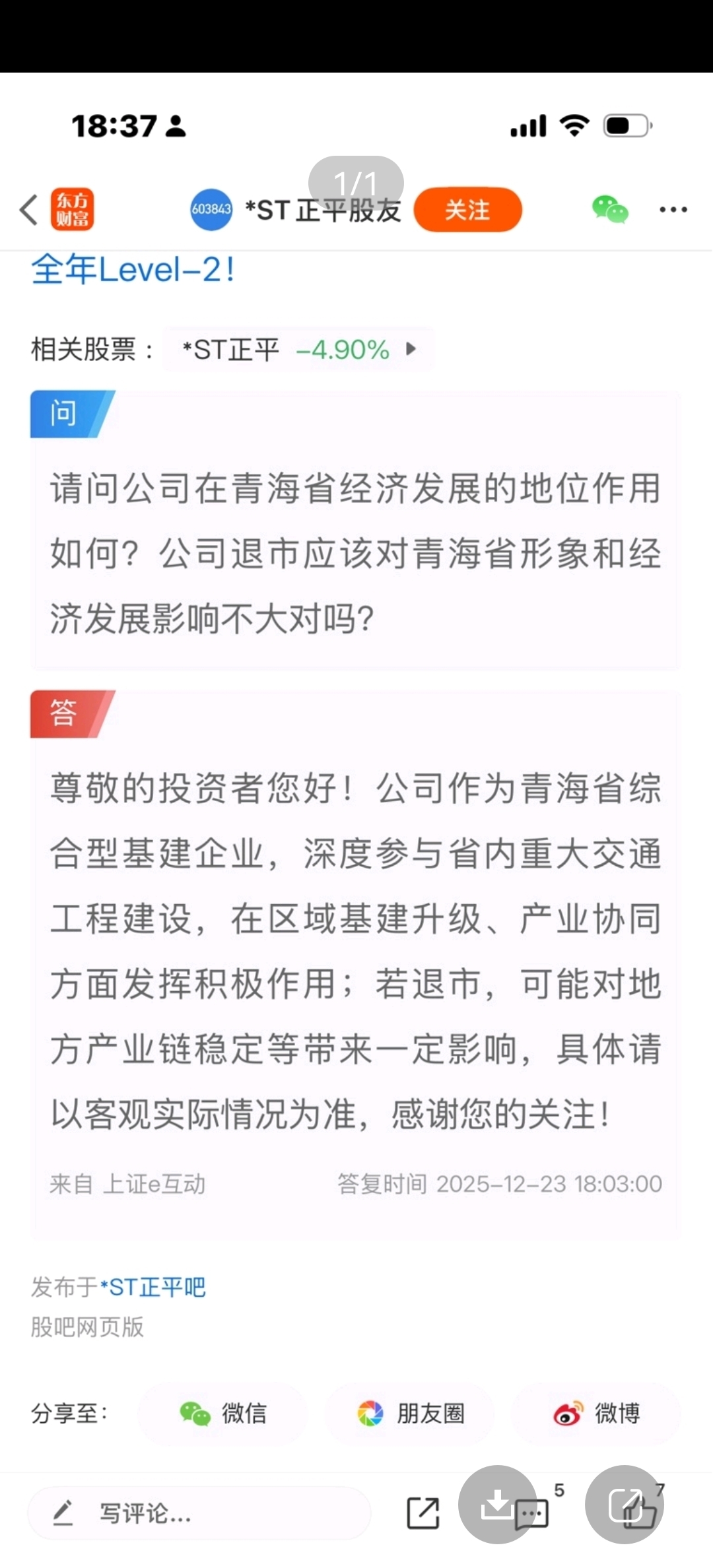 $*ST正平(SH603843)$ 正平不会退,兄弟们上刺刀