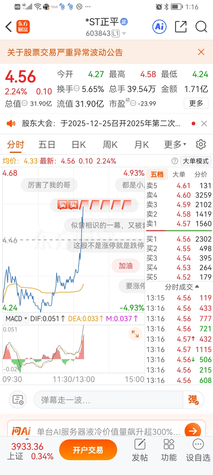 $*ST正平(SH603843)$ 正平止稳了,整个sT板块也会稳了。$*ST沐邦(SH603398)$ $*ST聆达(SZ300125)$