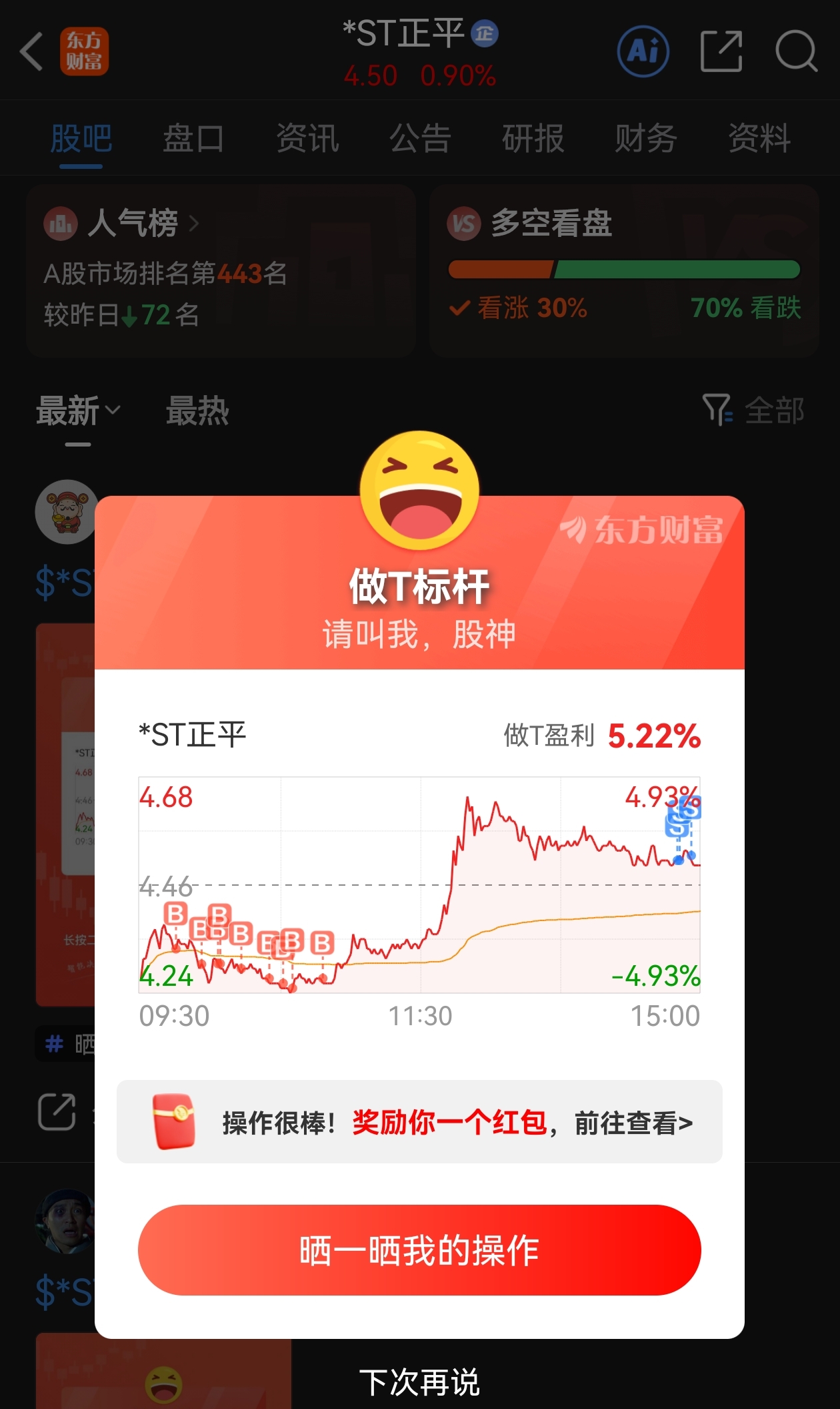 $*ST正平(SH603843)$ 只能做T高抛低吸降成本了,勾庄!