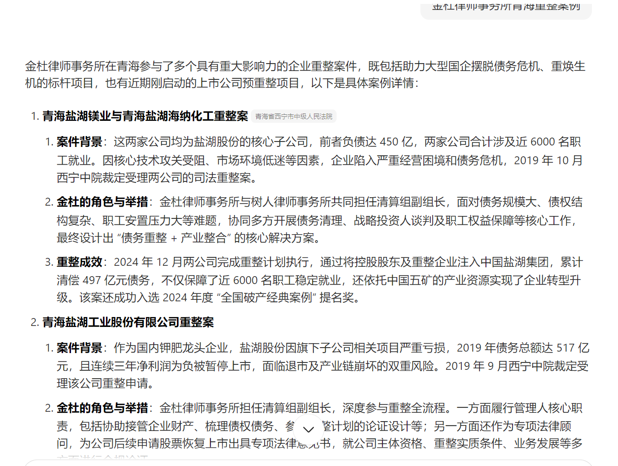 北京市金杜律师事务所负责,稳入啊。。。之前青岛两个大重整都他们负责