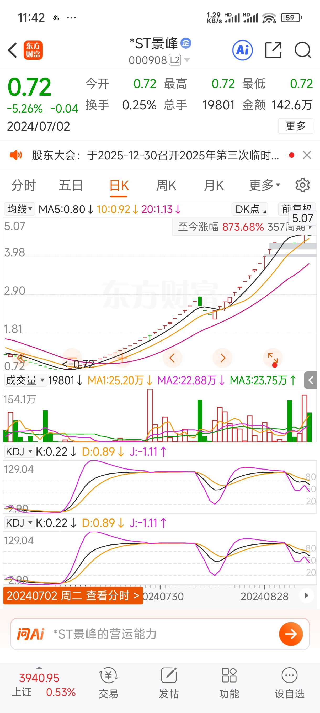 景峰24年7月3日进入预重整,17个一字板,两个月41涨停