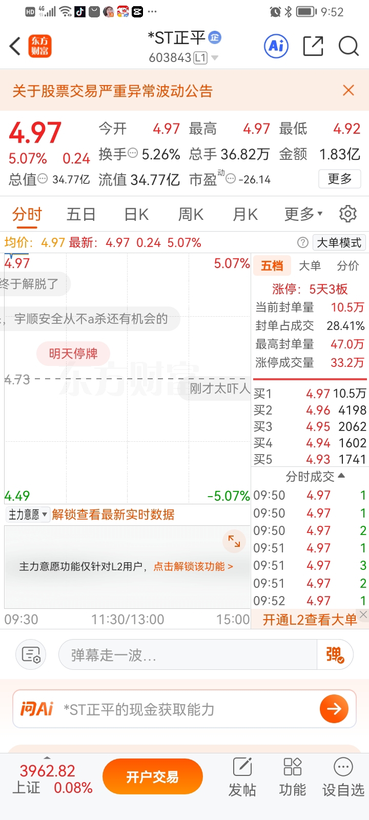 $*ST正平(SH603843)$ 感谢正平小庄,己把大部分沐邦调到正平,正平的预重整法院受理,安全垫己大大提高,所以可以重仓大胆介入。$*ST沐邦(SH603398)$ $*ST聆达(SZ300125)$