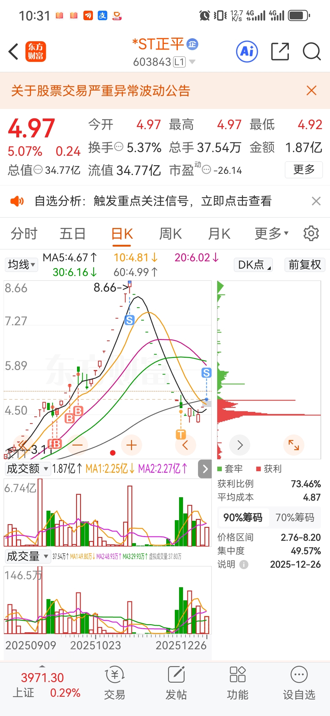 $*ST正平(SH603843)$ 祝兄弟们一路长虹,空狗们都被干出去才好,年底看那个不能上20,还是那句话,多头卸载软件赌生死