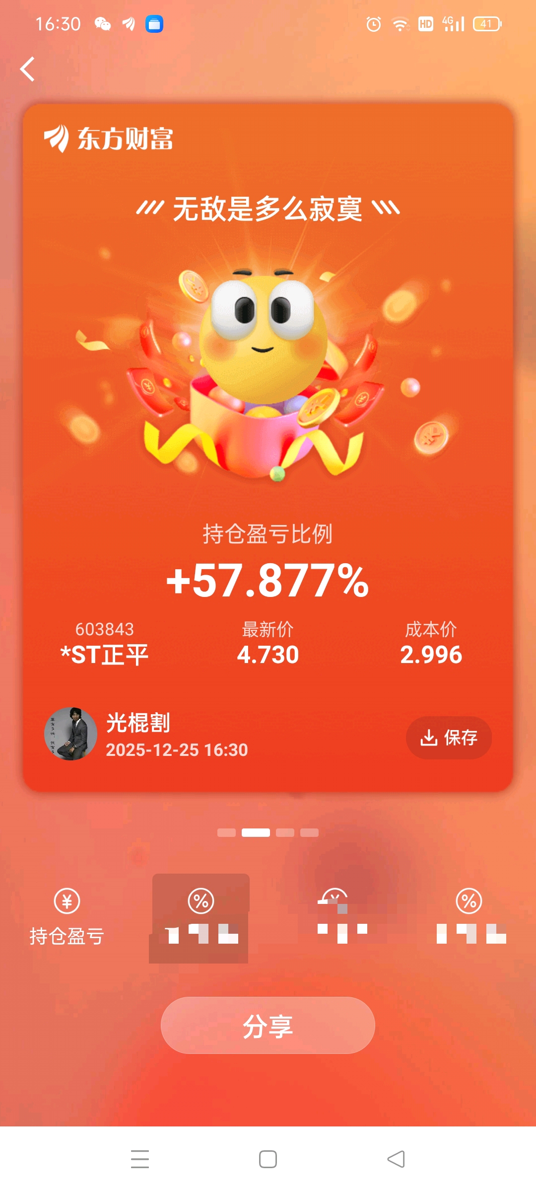 $*ST正平(SH603843)$ 你们都走吧!就让棍子割一个人丝在车上!东易市值太高。有收益最起码5年后。建议别碰。正平只要矿一开挖就有收益。顶多一年!东易家装真的一文不值!你们为什么要质疑棍子割逻辑?有票很了不起吗? 还有亚振江苏票真不能买。有些话说的太直白了不好!反正江苏湖北浙江票棍哥全部拉黑了。别逼我再去黑!韭菜是真可怜!跟着棍哥混不香吗?