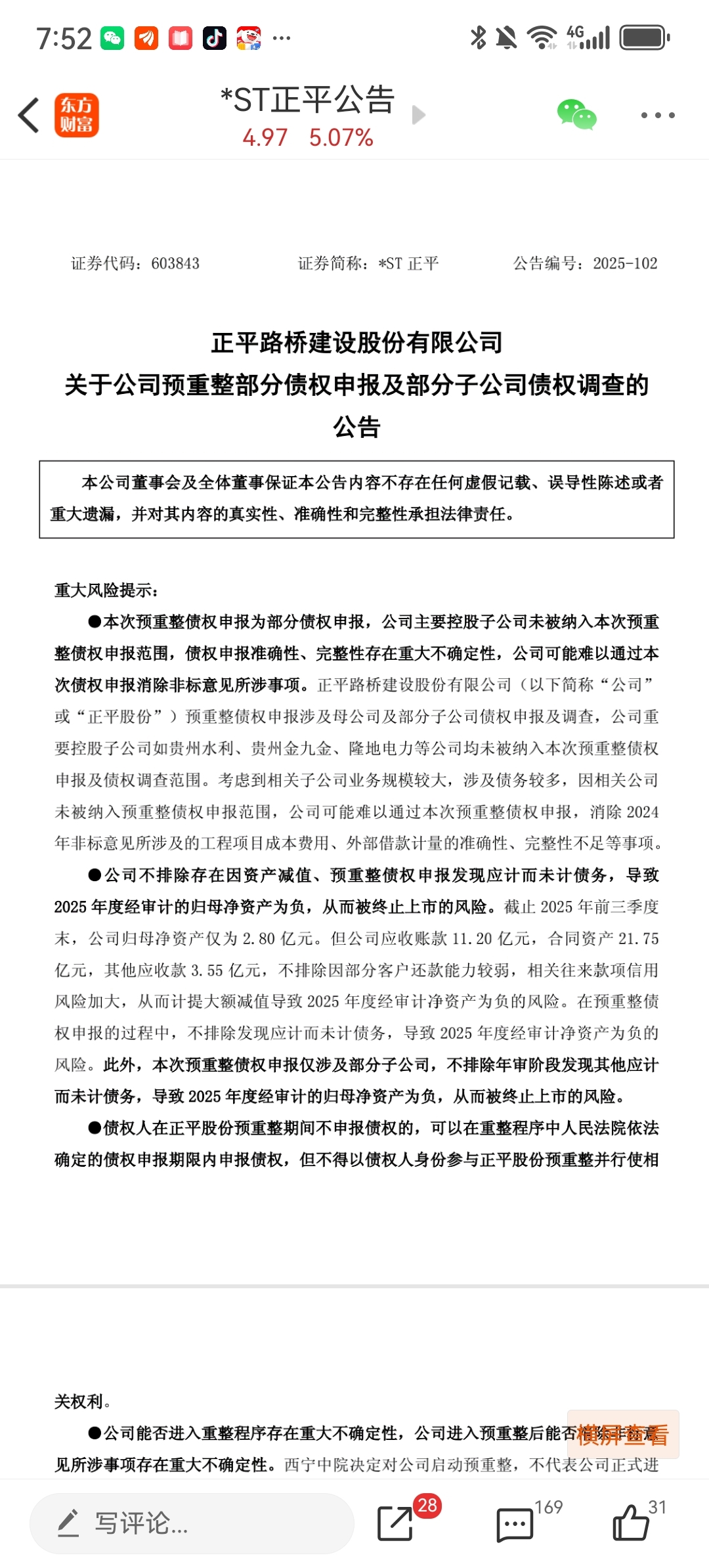 部分债权申报、公告提示24年非标消除的不确定性、25年前三季度非标不确定25年报时能否消除,从而引发强制退市,这些在周五盘中引发分歧,其实即使真的是在年报前解决不了非标问题年报后退市,在年报前答案没有公告前,主力也会拉高股价出货在退市的,大家只要在高点及时清仓不太贪心赚最后一个铜板,接最后一棒就没有太大风险,亏损的都是死多头铁的。
