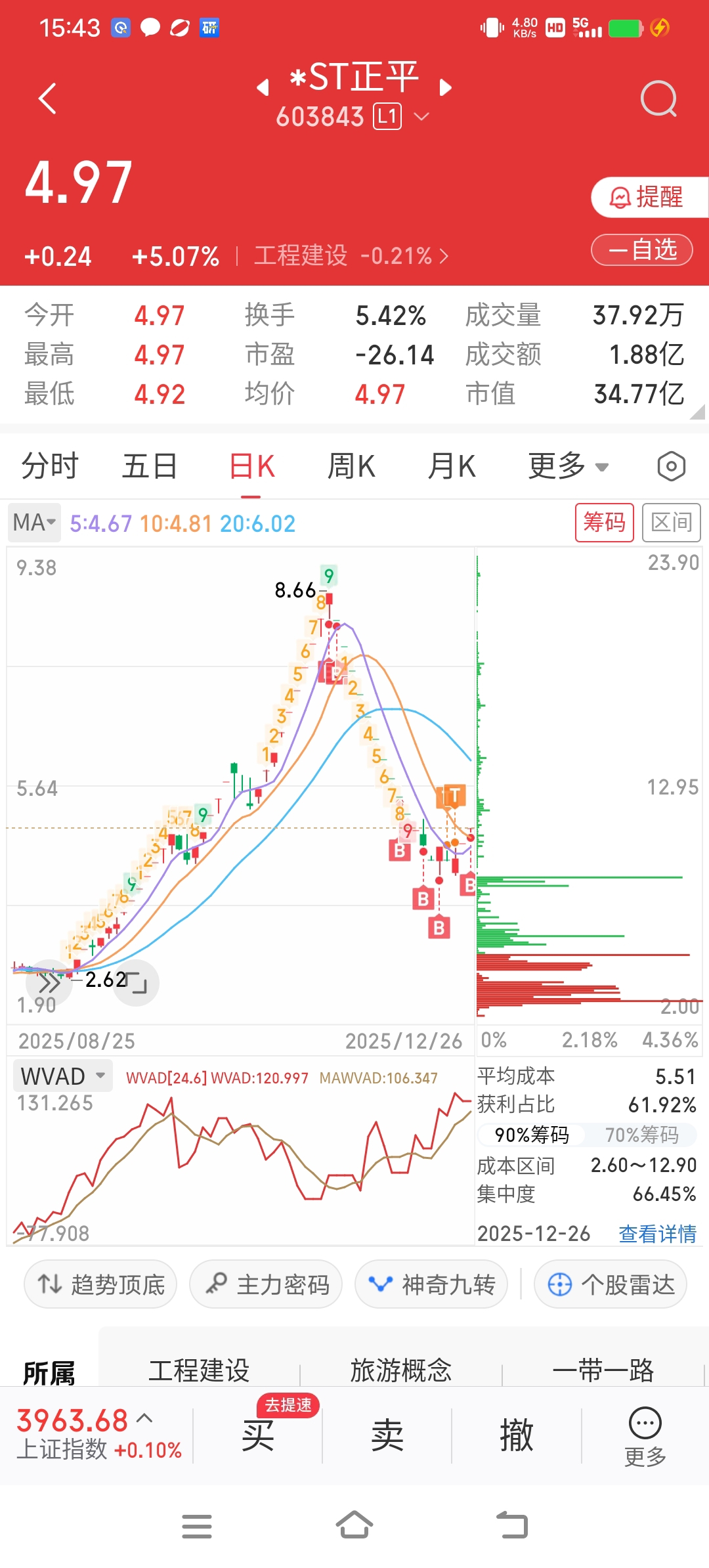 $*ST正平(SH603843)$ 死多头,不超过藏格不卖
