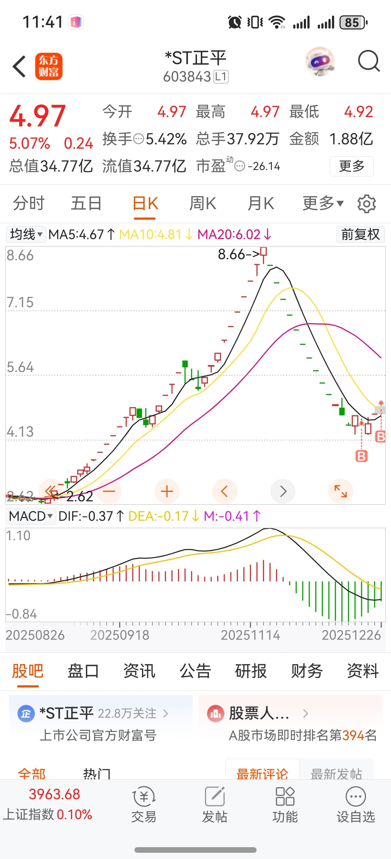 $*ST正平(SH603843)$ 小散进了几千块钱,希望没买错吧