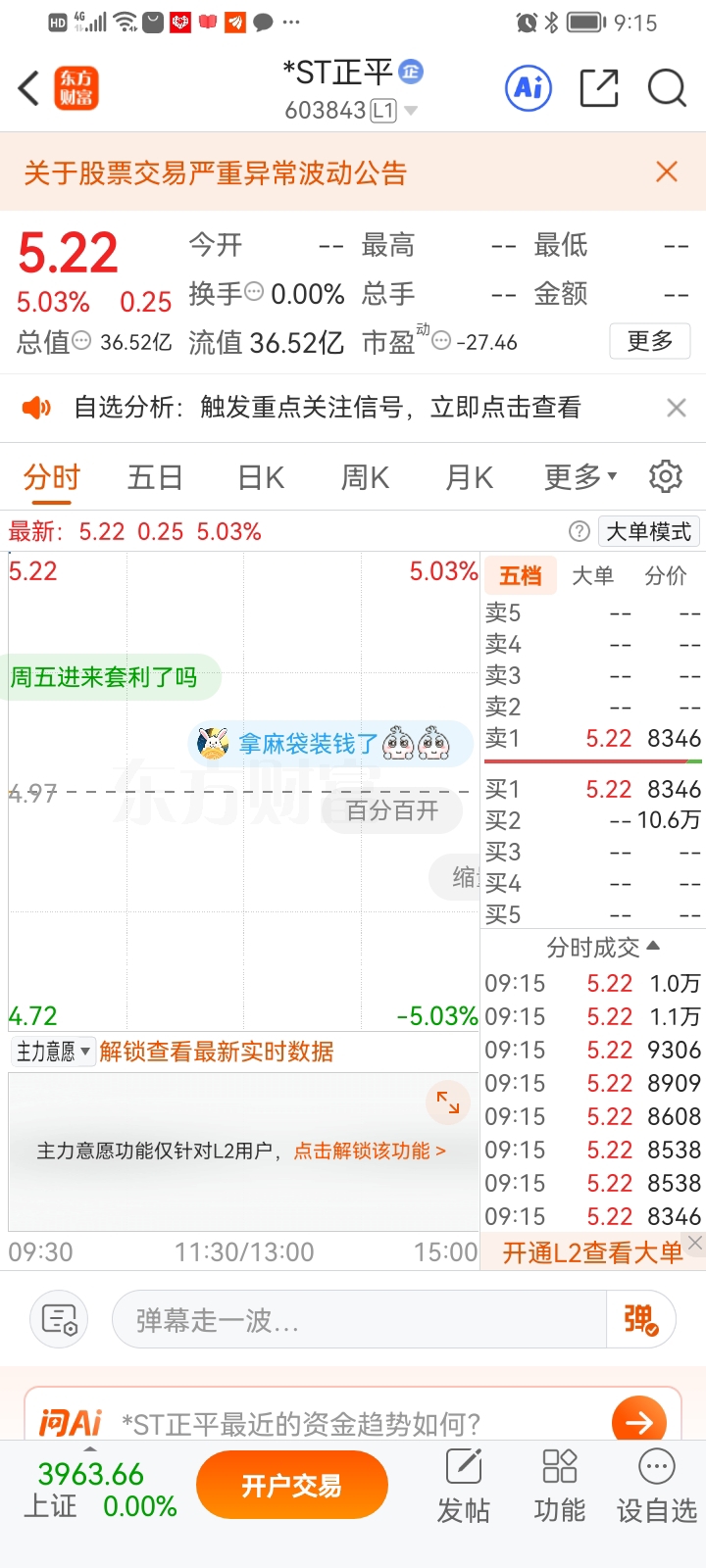 $*ST正平(SH603843)$ 封单不多,想买的可以挂单。$*ST沐邦(SH603398)$ $*ST东易(SZ002713)$