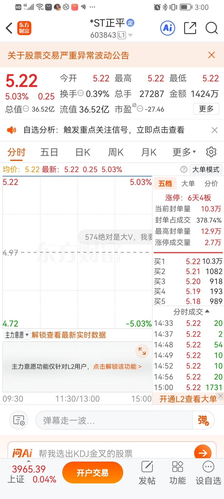 $*ST正平(SH603843)$ 看好正平的,晚上早点挂单,明天有些资金要出去过节,有机会买到,后天就难说了。$*ST沐邦(SH603398)$ $*ST东易(SZ002713)$