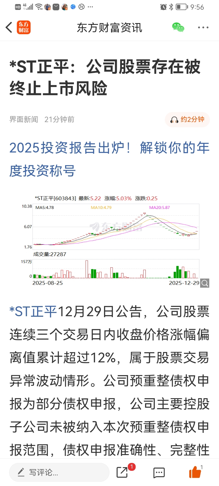 $*ST正平(SH603843)$ 界面新闻给你们发了,就问你们怕不怕。$*ST花王(SH603007)$ $*ST景峰(SZ000908)$