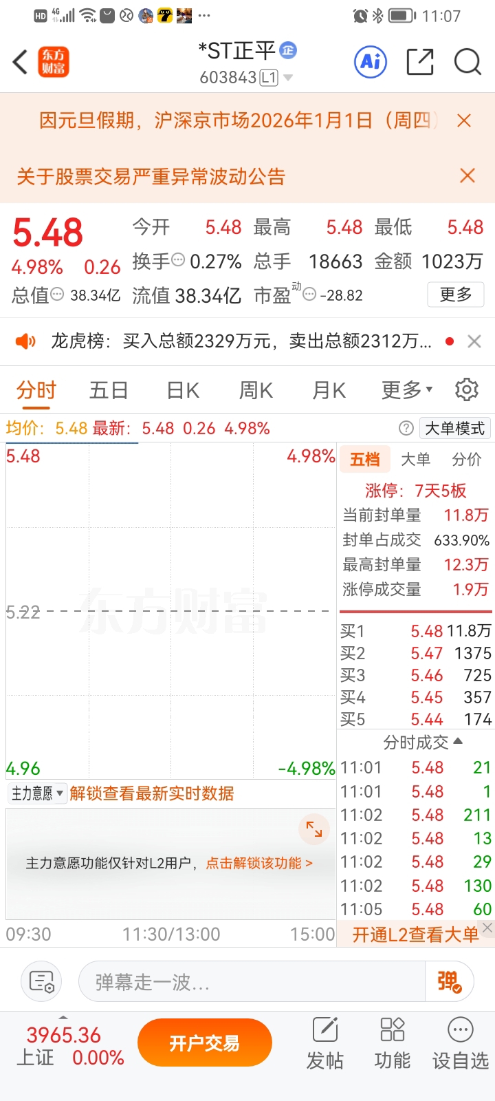 $*ST正平(SH603843)$ 下午会不会有那个大户急用钱卖出的?否则明天卖就领不出钱了。$*ST沐邦(SH603398)$ $*ST东易(SZ002713)$