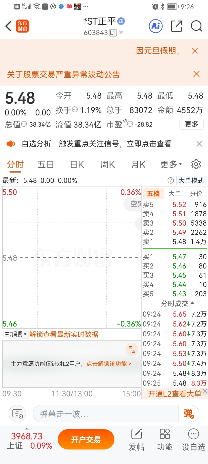 $*ST正平(SH603843)$ 正平今天要打开了,别说进不了。$*ST沐邦(SH603398)$ $*ST东易(SZ002713)$