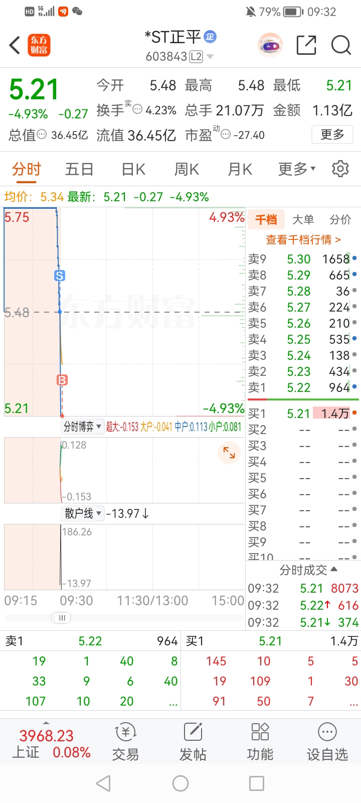 集合竞价跑路了,跌停板5.21接回来,美滋滋!