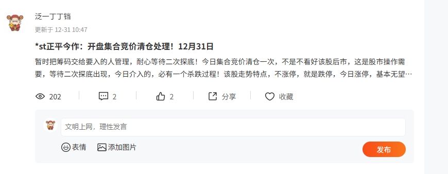 温馨提示: 1.根据《证券法》规定,禁止编造、传播虚假信息或者误导性信息,扰乱证券市场;2.用户在本社区发表的所有资料、言论等仅代表个人观点,与本网站立场无关,不对您构成任何投资建议。用户应基于自己的独立判断,自行决定证券投资并承担相应风险。《东方财富社区管理规定》