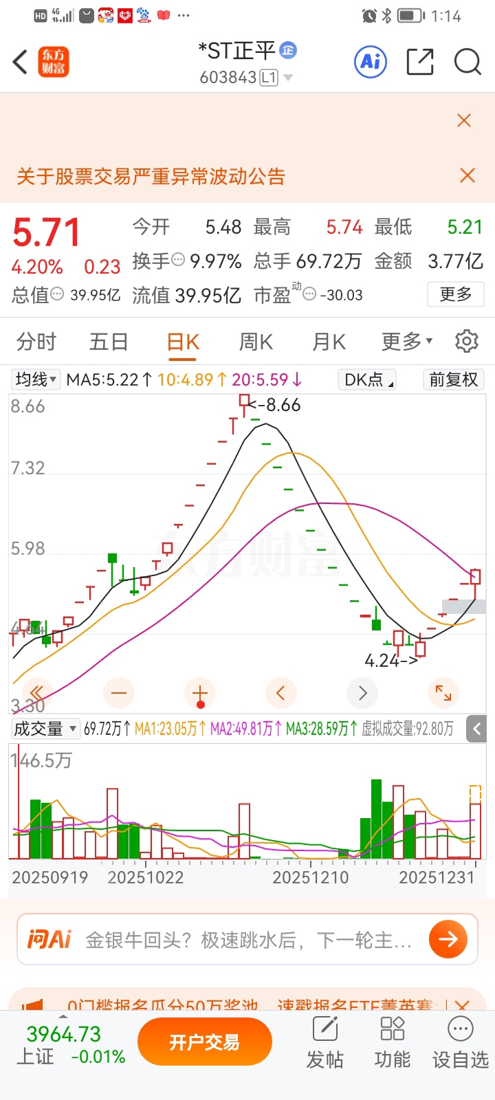 $*ST正平(SH603843)$ 正平走势很强,节日后看多,公司利空消息都打压不下,节后抛压就小了。$*ST景峰(SZ000908)$ $*ST东易(SZ002713)$