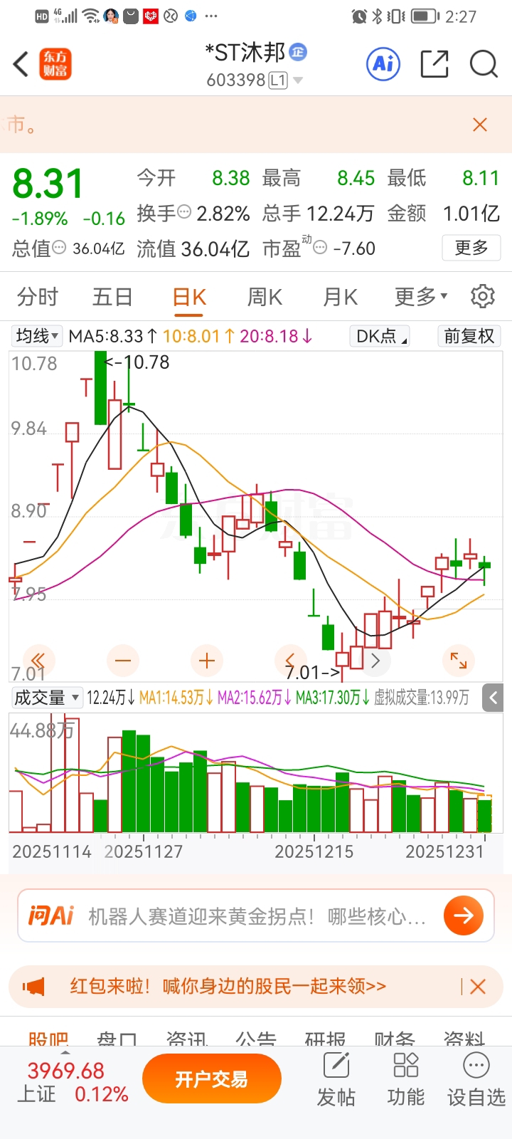 $*ST正平(SH603843)$ 加仓沐邦。感觉节日有公告,清仓$*ST聆达(SZ300125)$ ,聆达春节后才回来玩年季报。$*ST东易(SZ002713)$