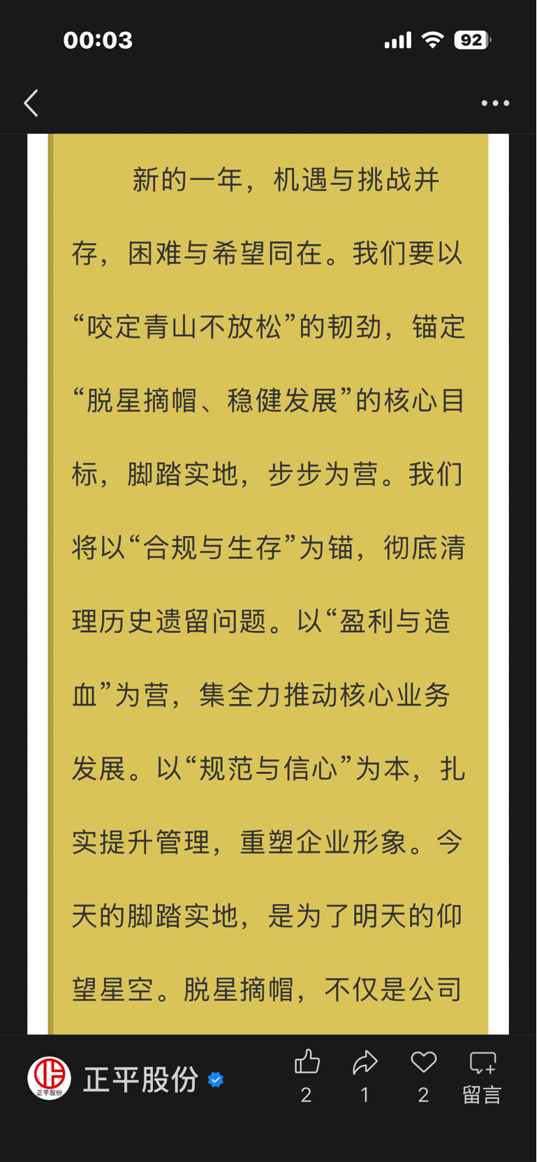 $*ST正平(SH603843)$ 跨年妖,等待去星摘帽