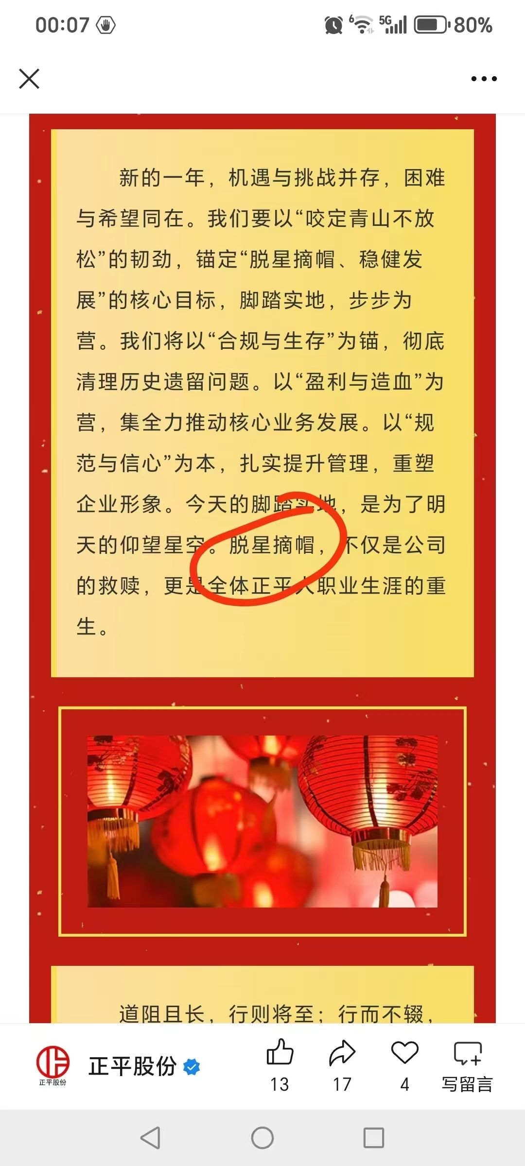 $*ST正平(SH603843)$ $ST中迪(SZ000609)$ $*ST东易(SZ002713)$ 辞旧迎新,记得去年元旦发了一帖,2025的财富增长从宁科开始,从一个人到一大群人,人人都能翻倍,应该交上了一个不错答卷,基本全翻倍起,今年2026年财富增长从正平,中迪,东易开始吧,新年再立个flag,500%,明年元旦见证。