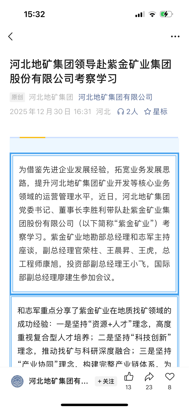 $*ST正平(SH603843)$ 河北地矿集团近日赴紫金集团学习!恭喜