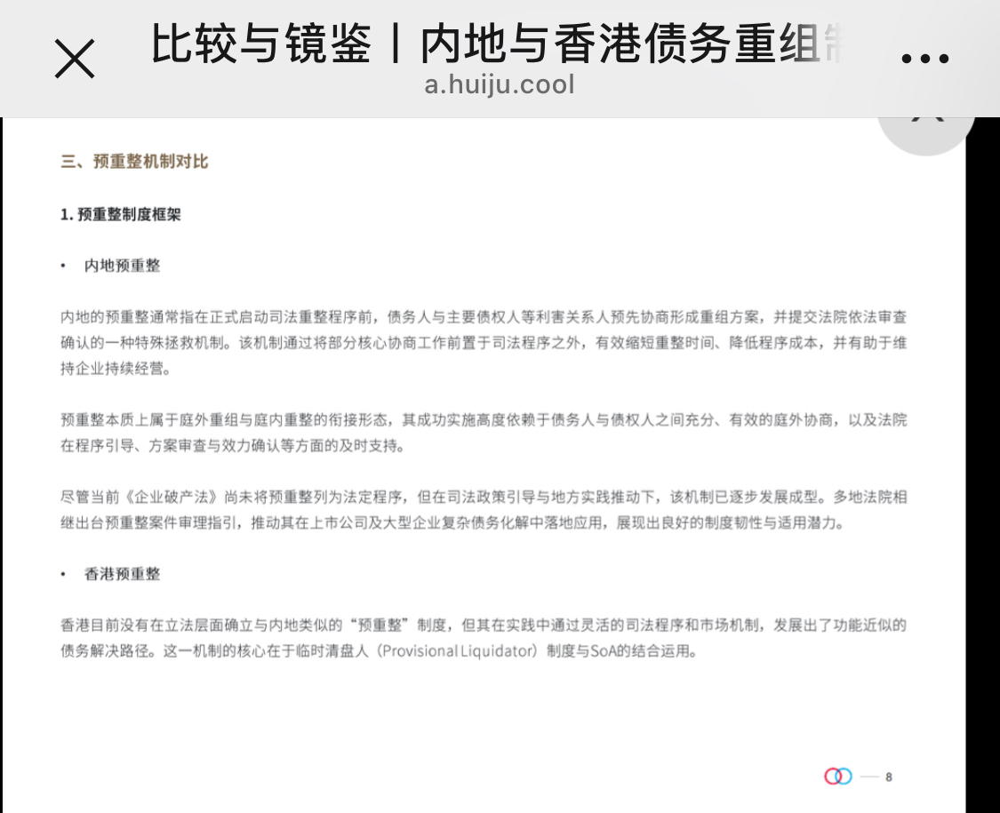 大家有关注金杜律师事务所吗?有一篇文章探讨了内地债务重组,提到为提高重整效率,债