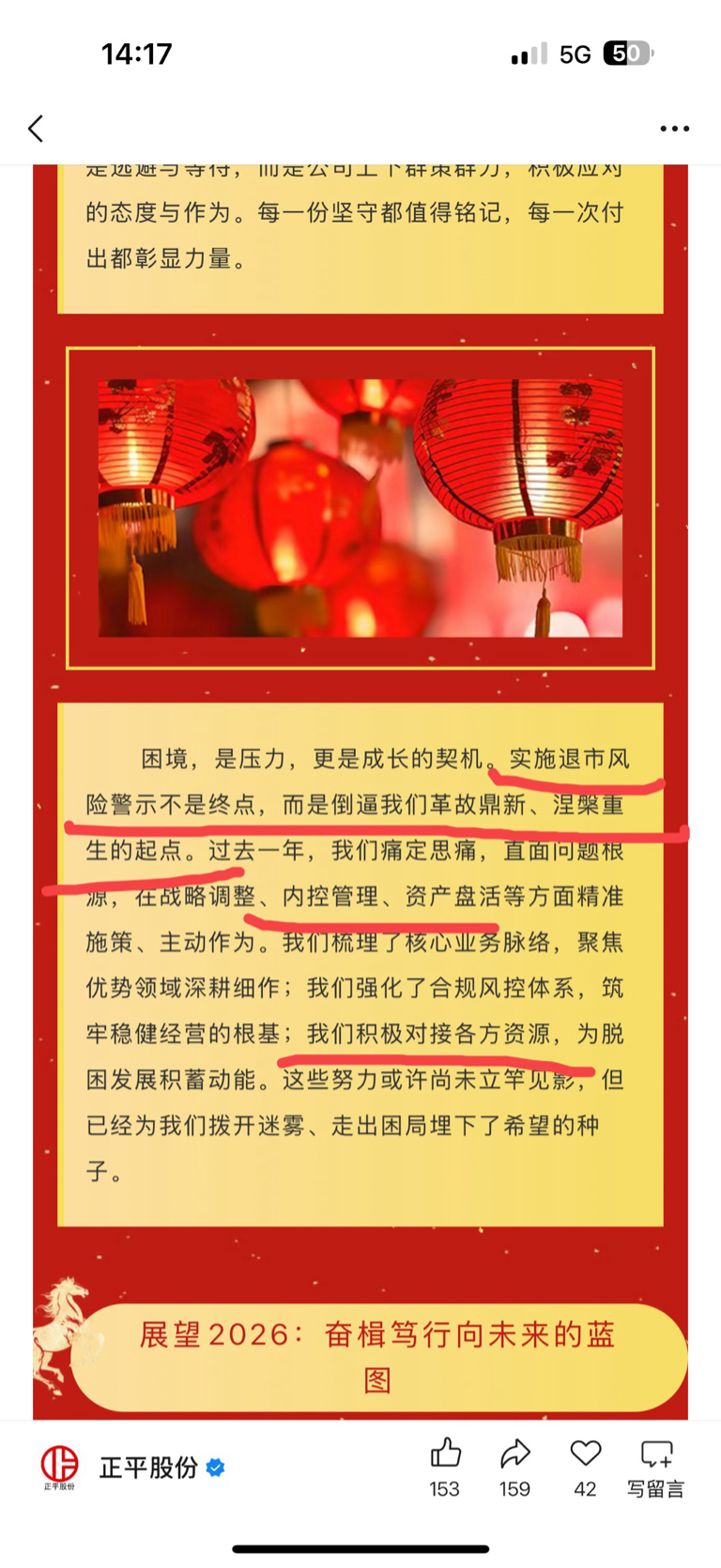 看看正平的新年祝词,牛吧。直接把2026年脱星摘帽都写出来了。