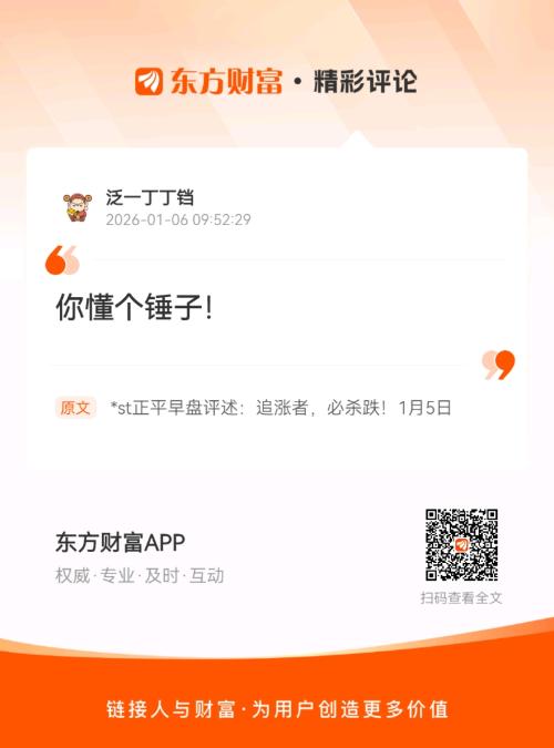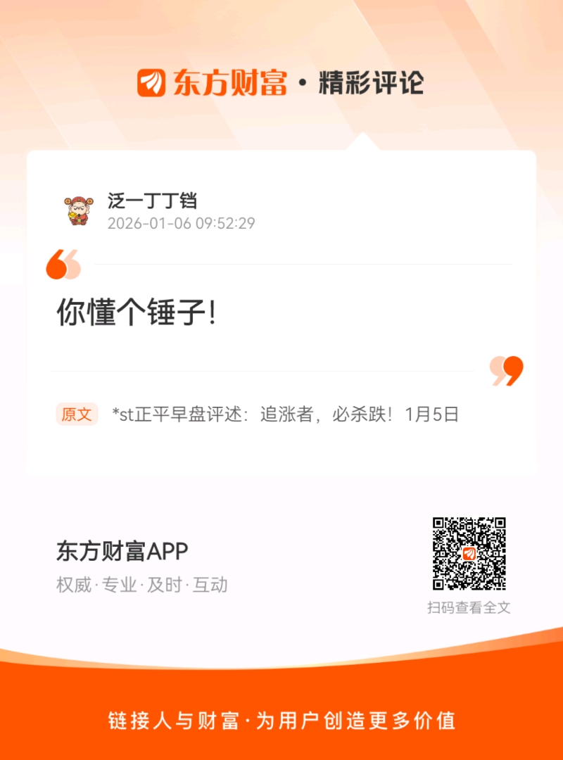 温馨提示: 1.根据《证券法》规定,禁止编造、传播虚假信息或者误导性信息,扰乱证券市场;2.用户在本社区发表的所有资料、言论等仅代表个人观点,与本网站立场无关,不对您构成任何投资建议。用户应基于自己的独立判断,自行决定证券投资并承担相应风险。《东方财富社区管理规定》