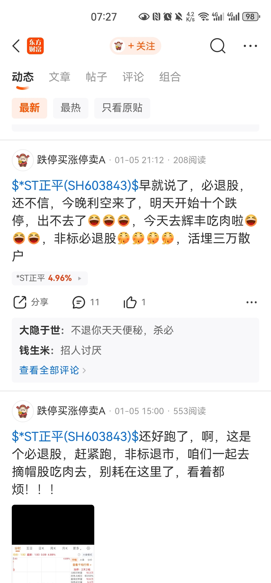 这个人无脑唱空正平,随手翻了下,破案了,1.5号被洗出去了,现在疯狂唱空想要接回来,笑死。搞不懂这种人的脑回路,全是没营养的唱空,哪怕稍微带点的分析信服力也强一点啊