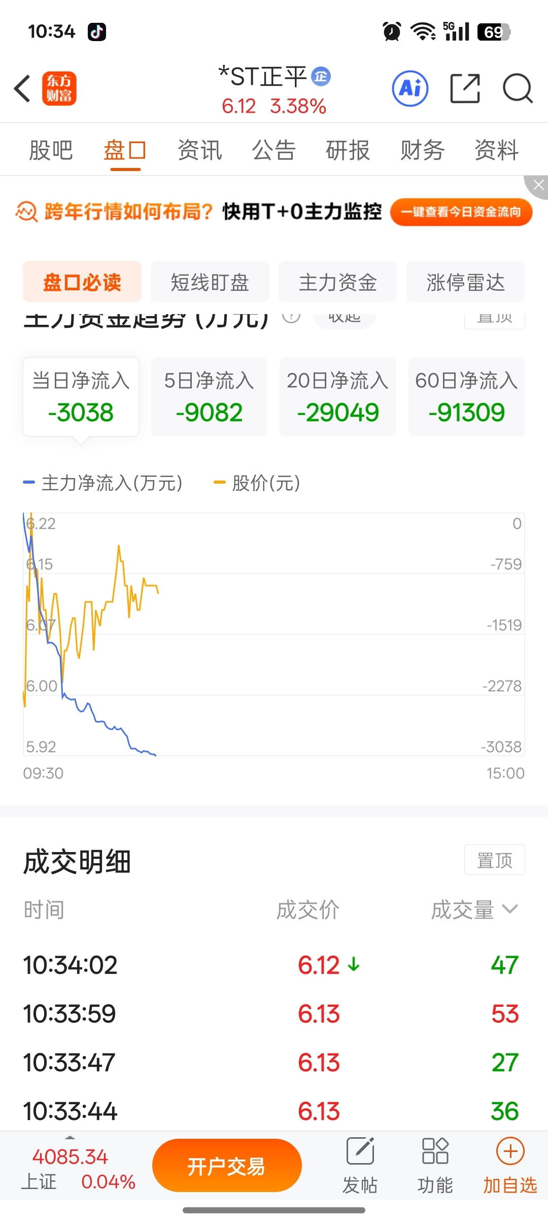 $*ST正平(SH603843)$ 主力一直在流出啊