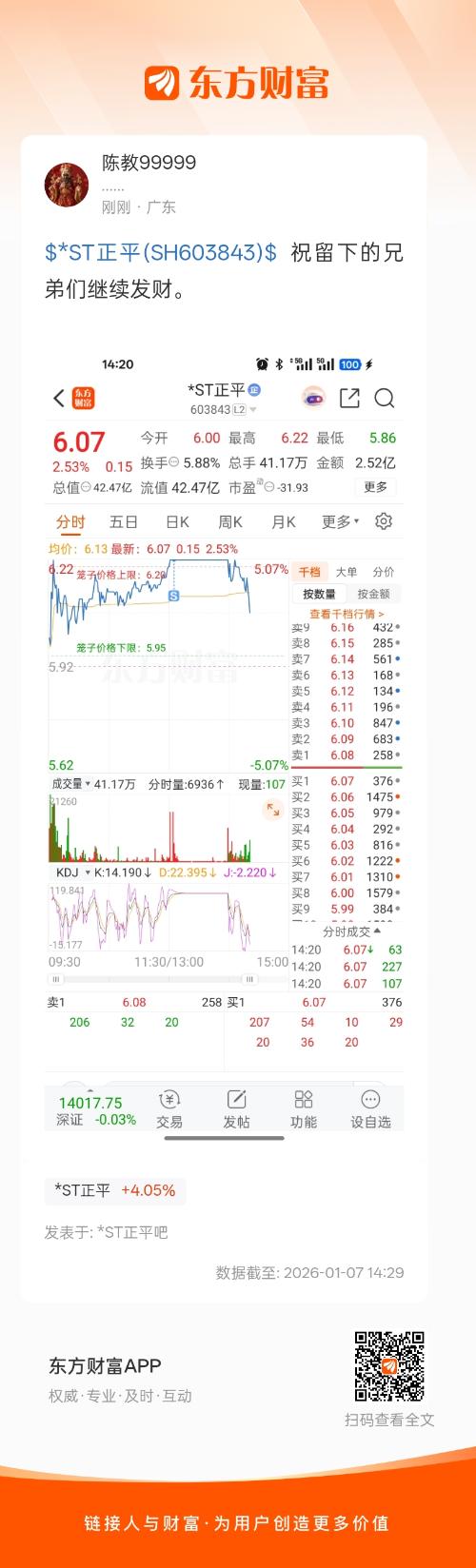 $*ST正平(SH603843)$  祝留下的兄弟们继续发财。