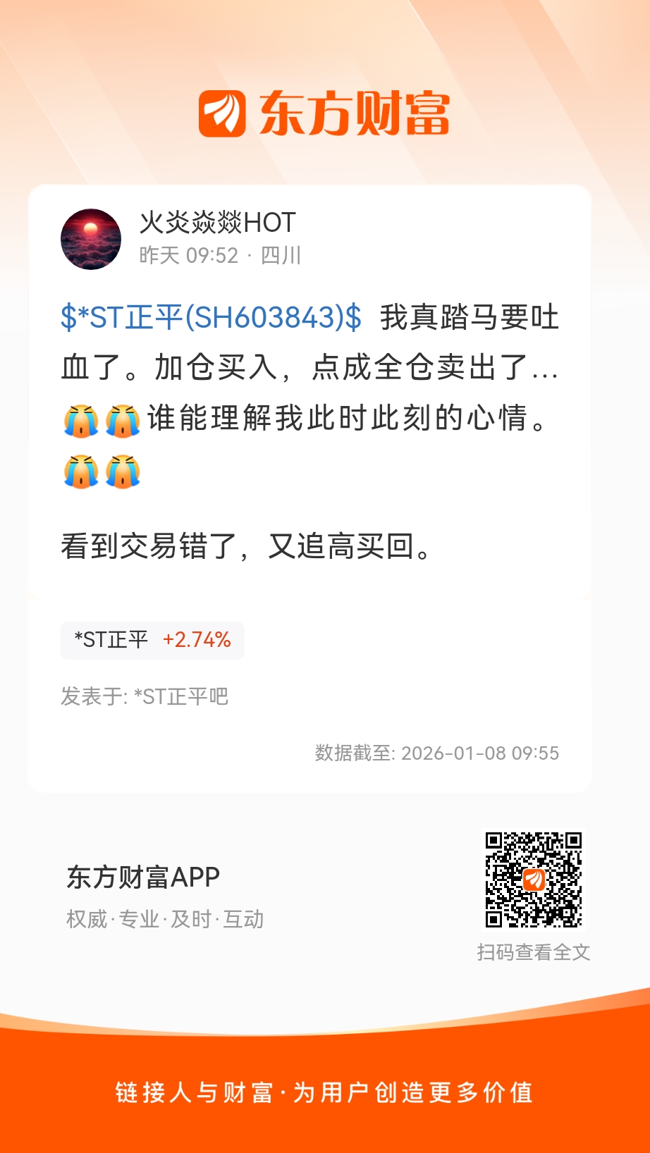 $*ST正平(SH603843)$ 我真踏马要吐血了。加仓买入,点成全仓卖出了…