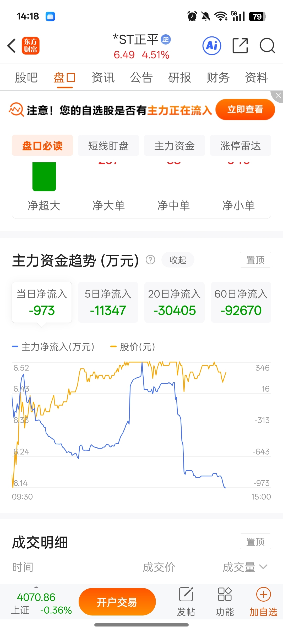 $*ST正平(SH603843)$ 大资金每天都在跑,散户每天都在进,哪一天大资金跑完了,里面的散户就开始踩踏了,是这样的剧本吧?