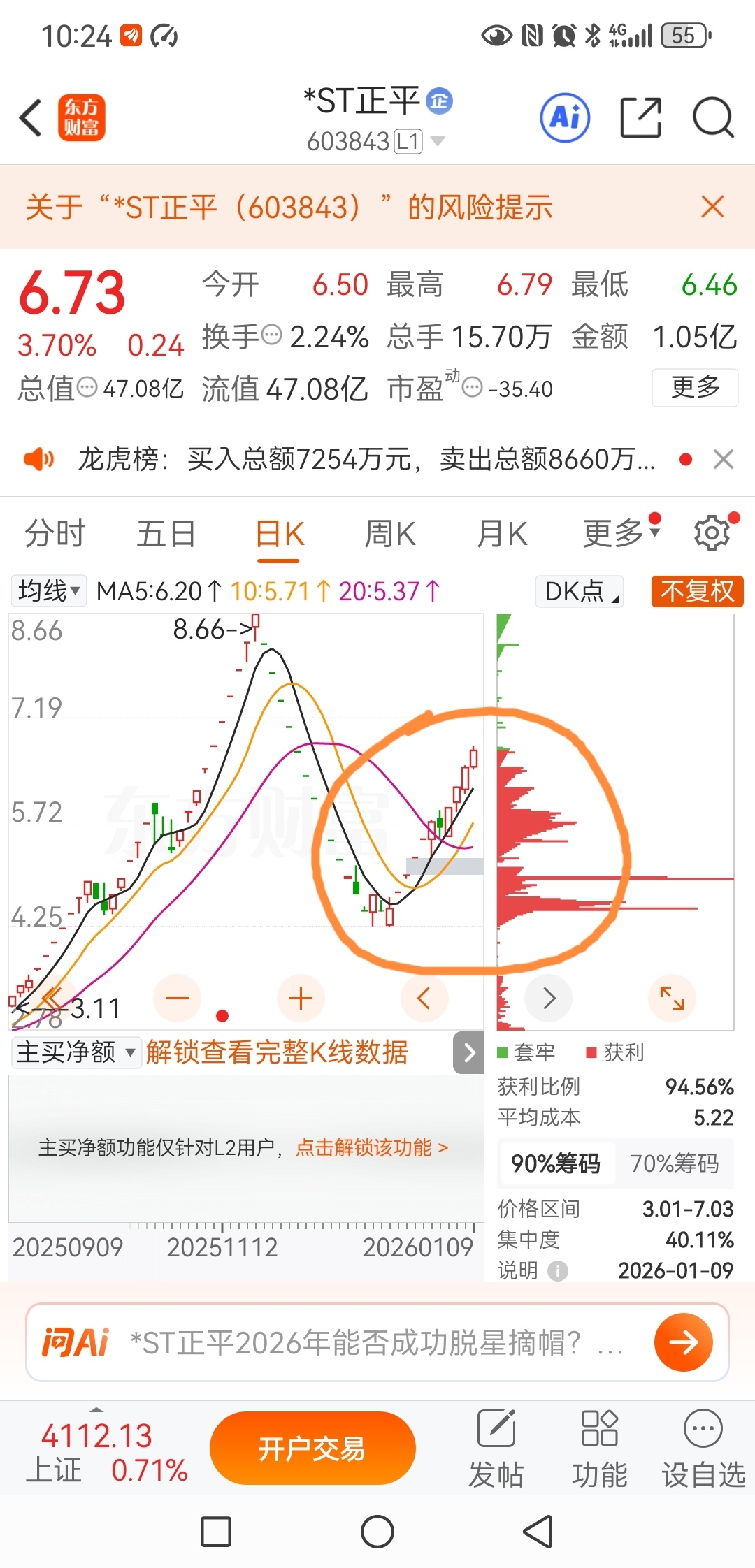 $*ST正平(SH603843)$ 底部积累的筹码越多,上升的高度就越高。刚突破底部筹码密集区,上面的空间大得很。放心持有!