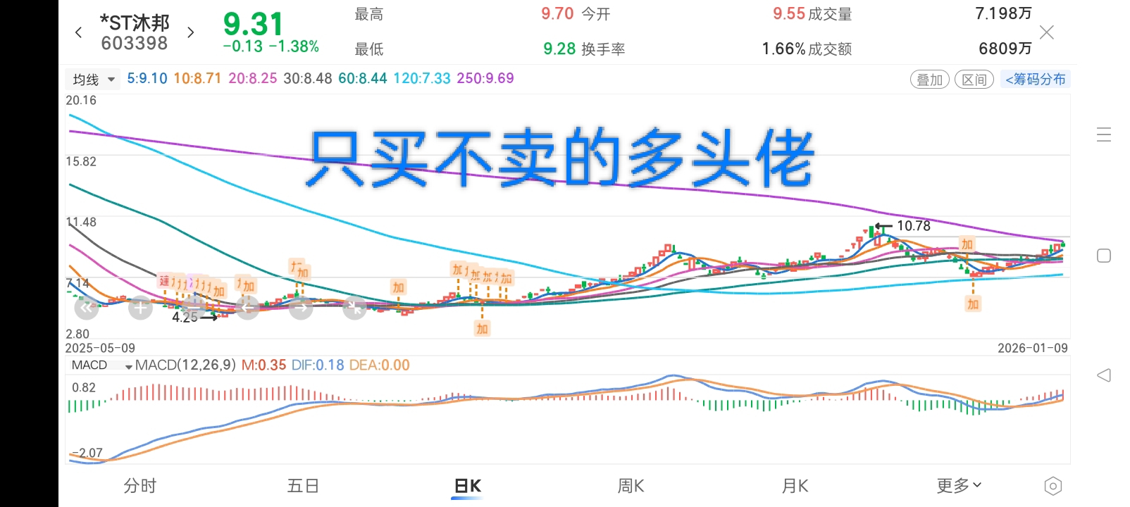 $*ST沐邦(SH603398)$ 一不小心,刚刚碰到年线了,明明站上去就在眼前,干嘛要调皮?