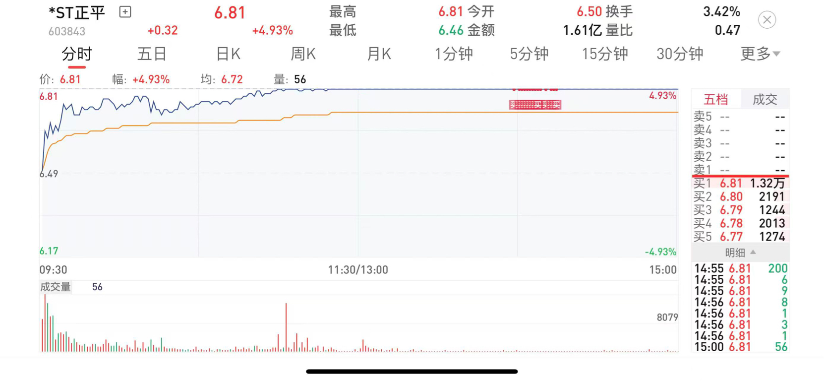 $*ST正平(SH603843)$ 今天再加几十万进去,给大家顶板。