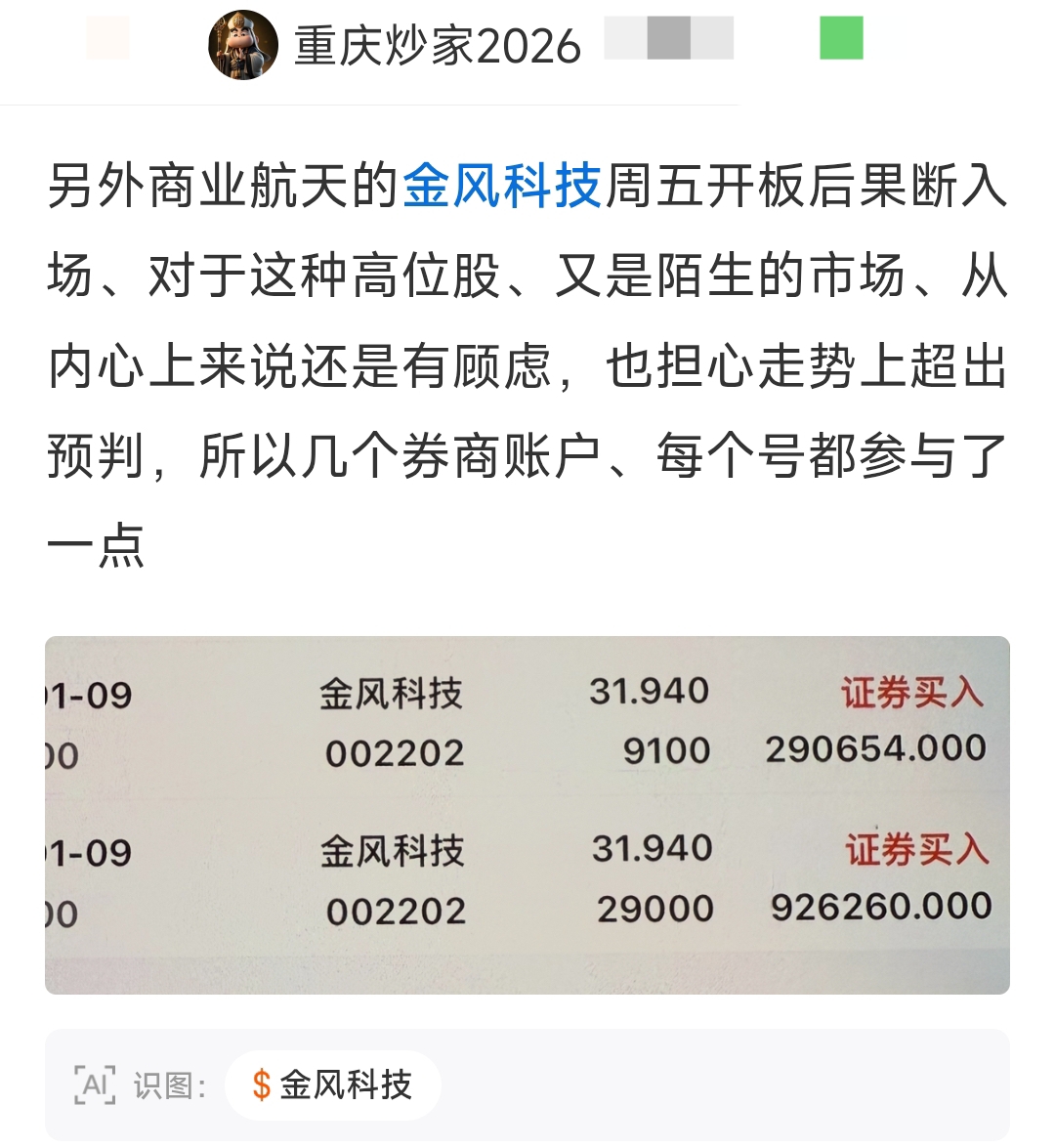 2026年1月11日(辞忆十四年一月十一日),重庆炒家2026和ST武夷山联合发帖,号称买入了金风科技。