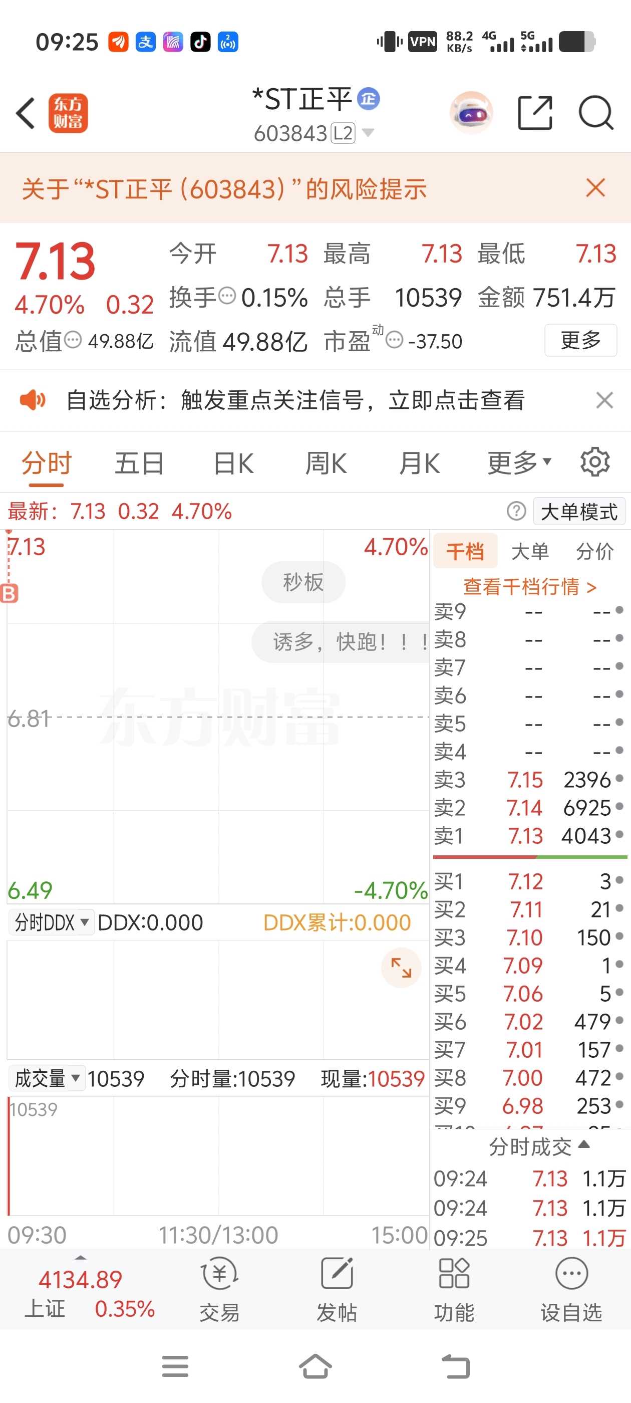 $*ST正平(SH603843)$ 加满了。无需多言!