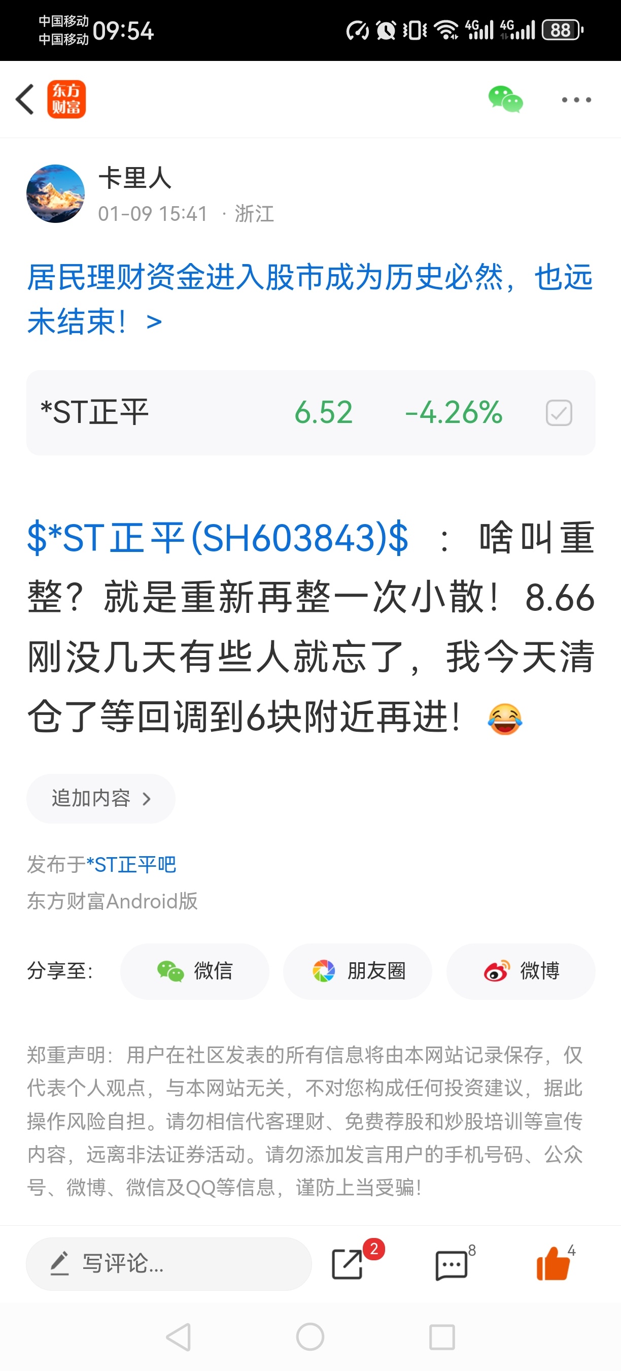 温馨提示: 1.根据《证券法》规定,禁止编造、传播虚假信息或者误导性信息,扰乱证券市场;2.用户在本社区发表的所有资料、言论等仅代表个人观点,与本网站立场无关,不对您构成任何投资建议。用户应基于自己的独立判断,自行决定证券投资并承担相应风险。《东方财富社区管理规定》