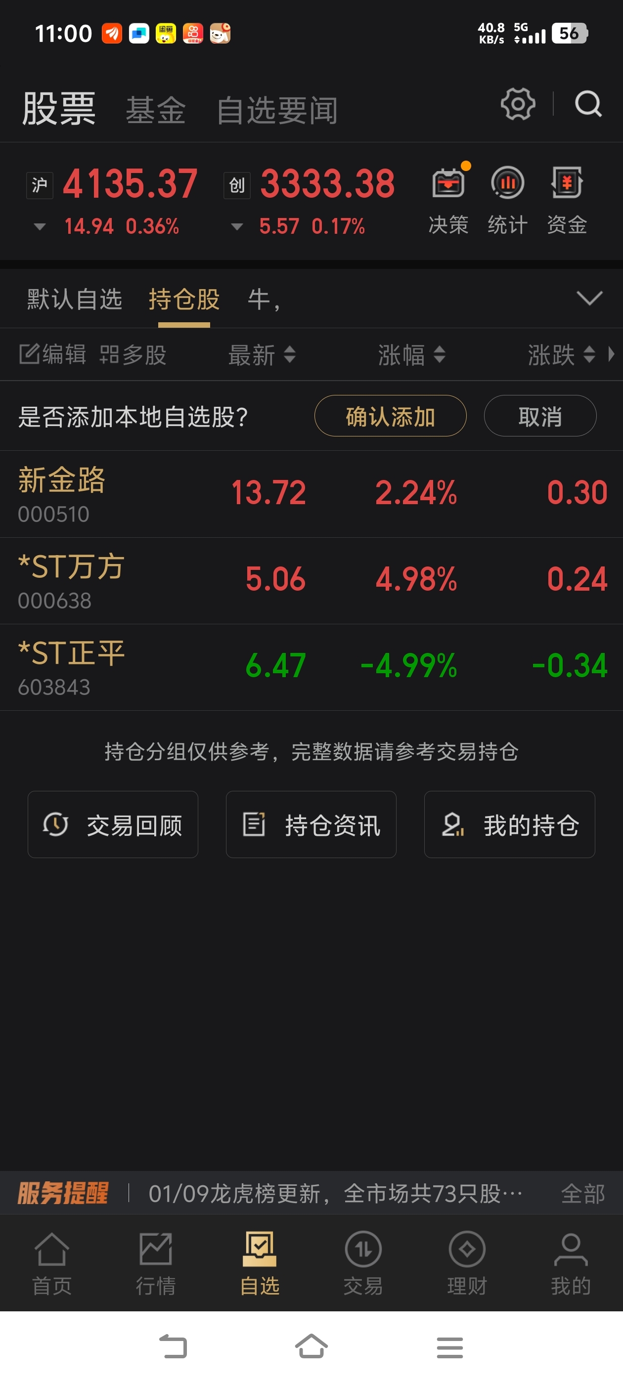 $*ST正平(SH603843)$ 今天还算顶得住,两个涨一个跌,赚2个点