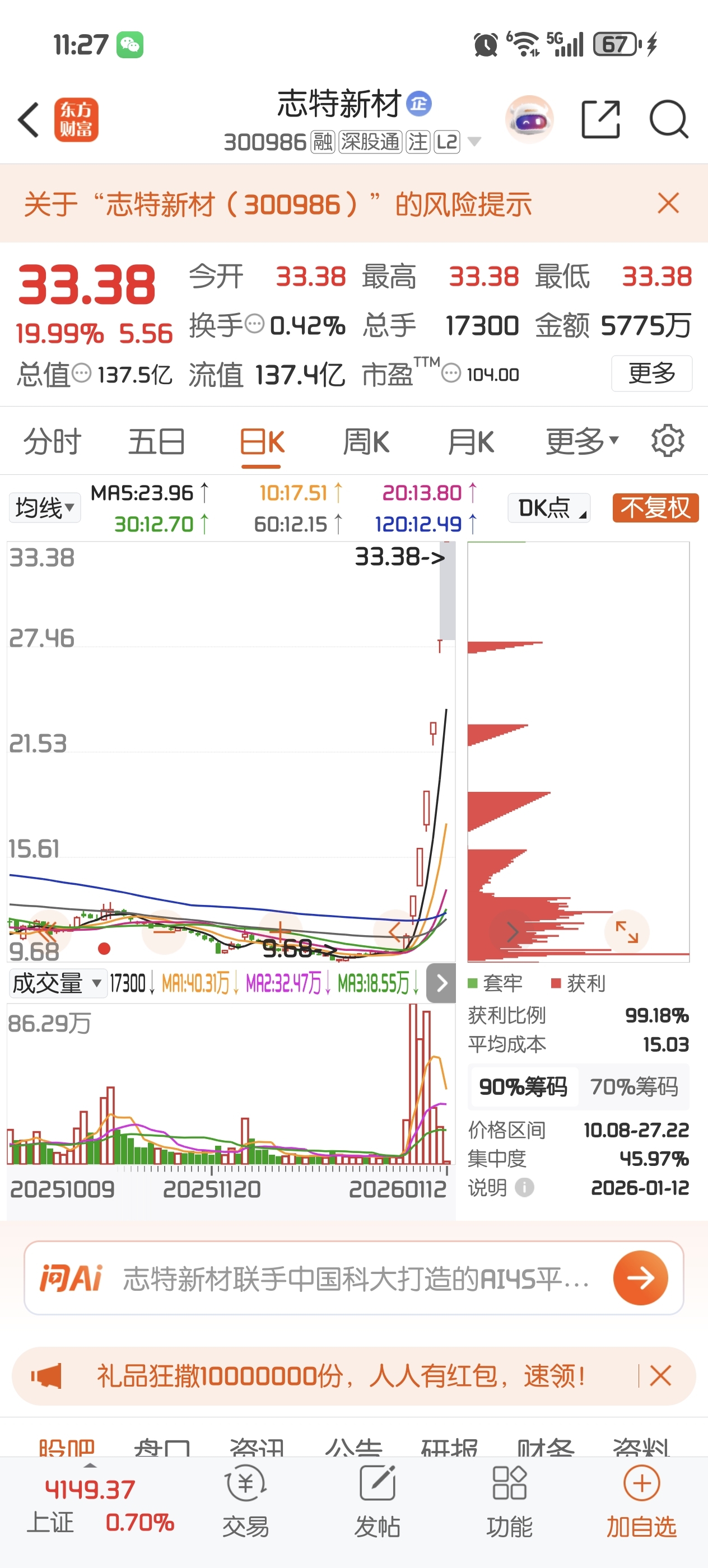 $*ST正平(SH603843)$ 虽然但是,别人一周三倍都不怕,你怕个球