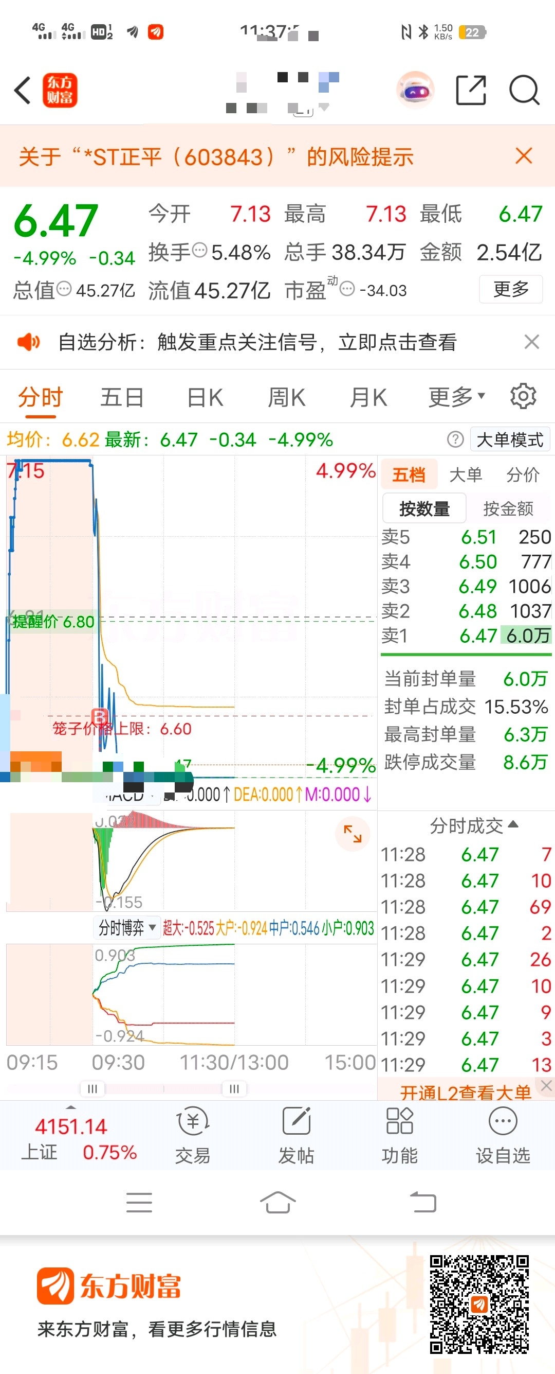 $*ST正平(SH603843)$ 一股不卖,投资人都没出来,预期还在,就不走,