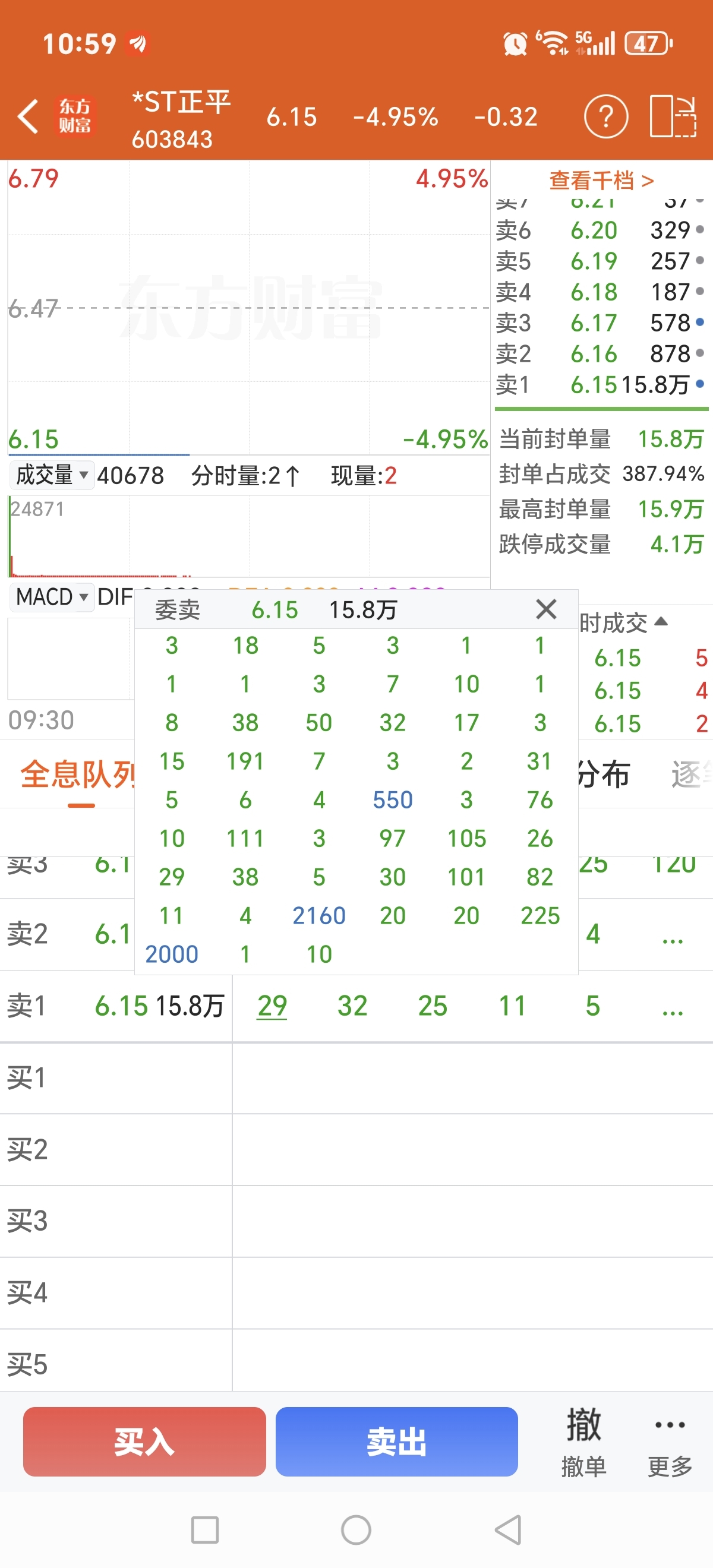 $*ST正平(SH603843)$ 刚刚看了一下封单,都是小单,二千以上的有五个,还是后面加了二个,根本就不像上次回调大单堵门,完全是有人借前面十几个跌停的阴影引导下造成踩踏