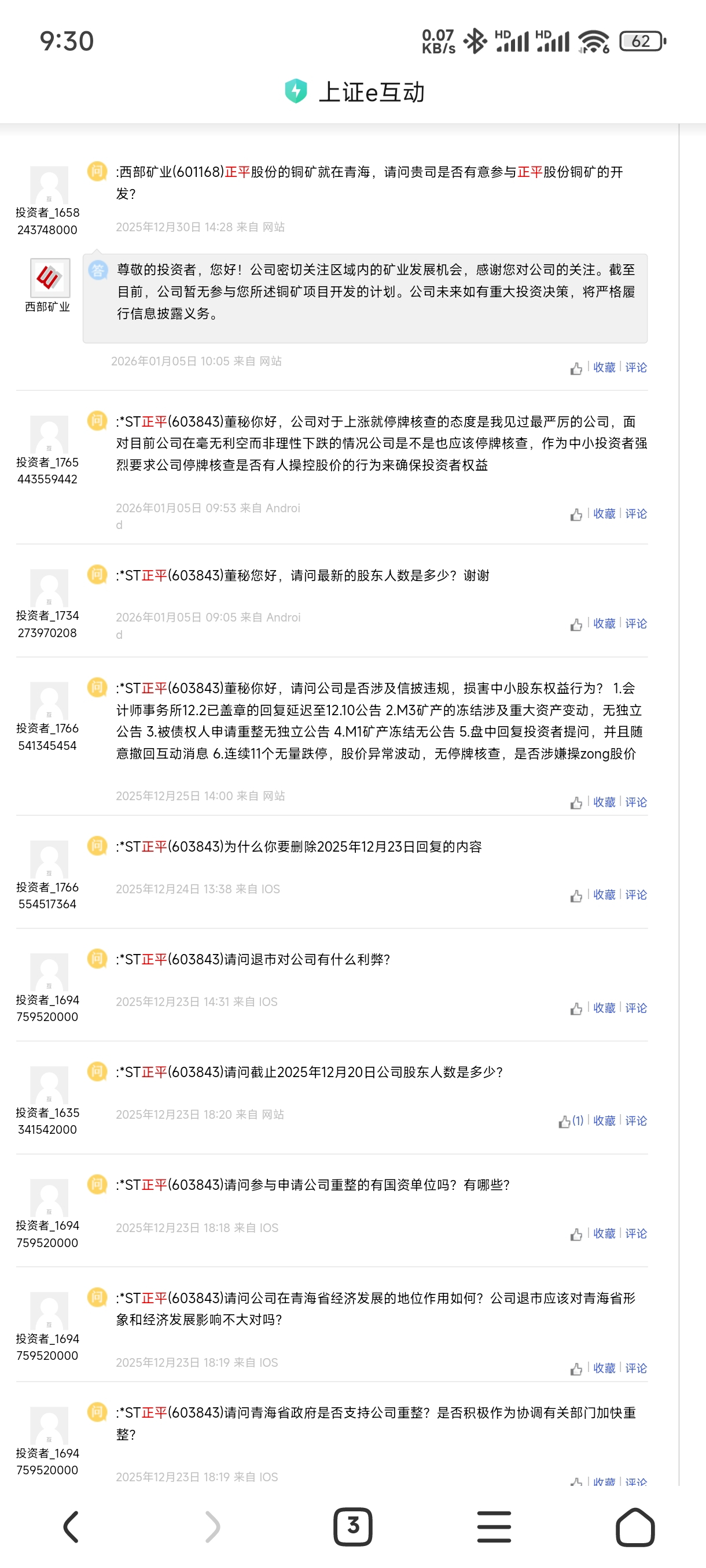 $*ST正平(SH603843)$ 慧慧不出来回答一下问题吗,看看西部矿业的董秘
