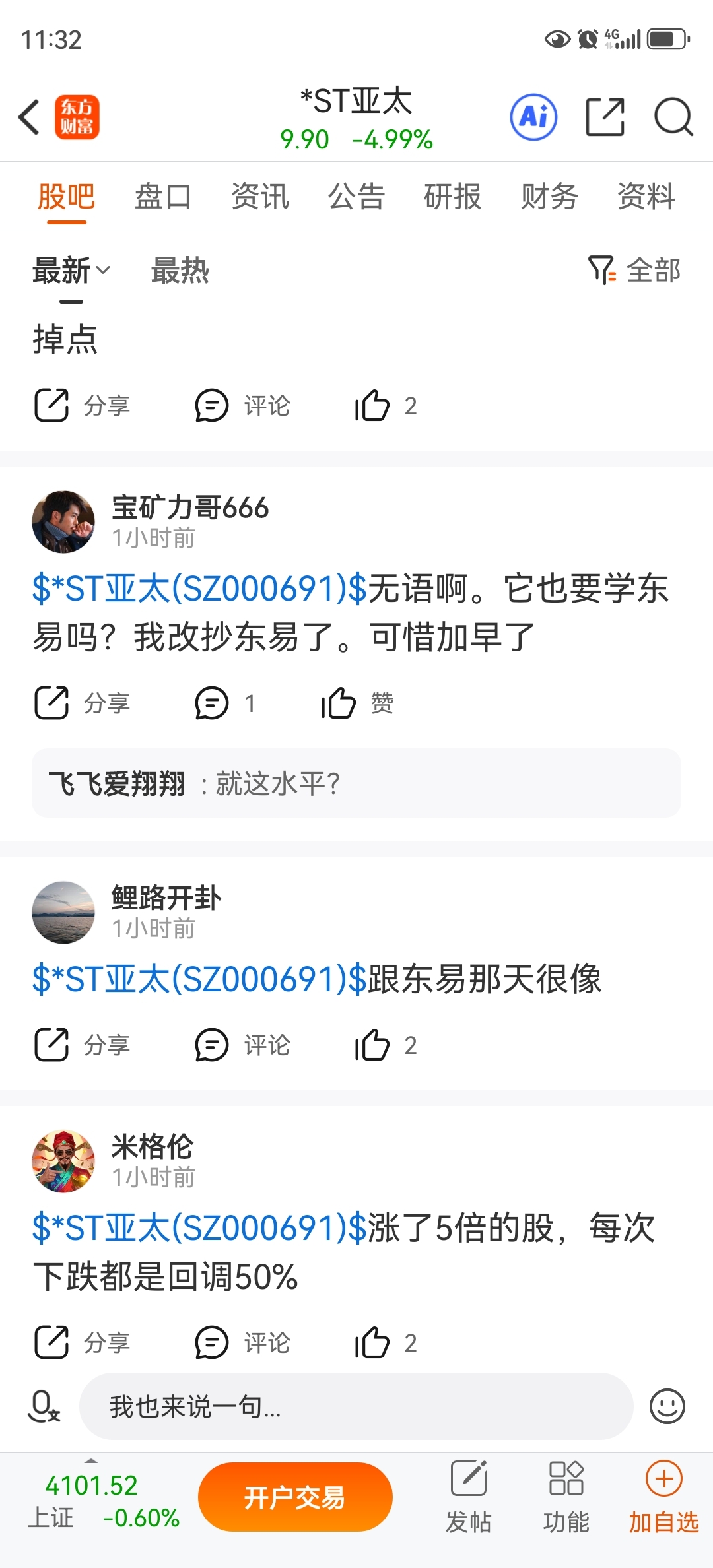 昨晚来唱空这家伙在亚太吃跌停,报应啊