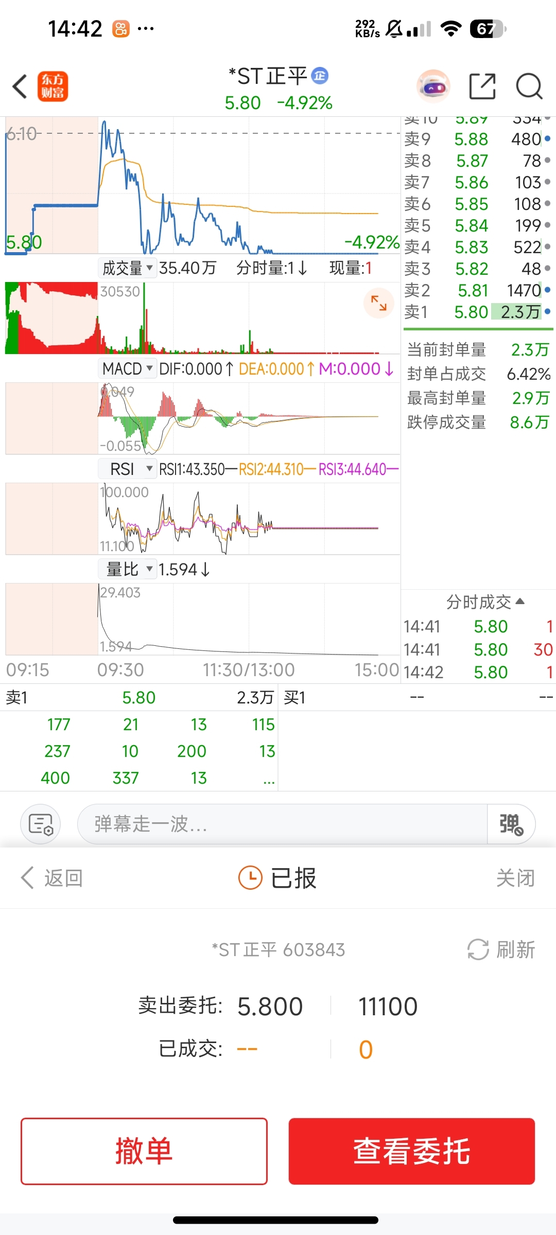 $*ST正平(SH603843)$ 压上,有能耐吃了