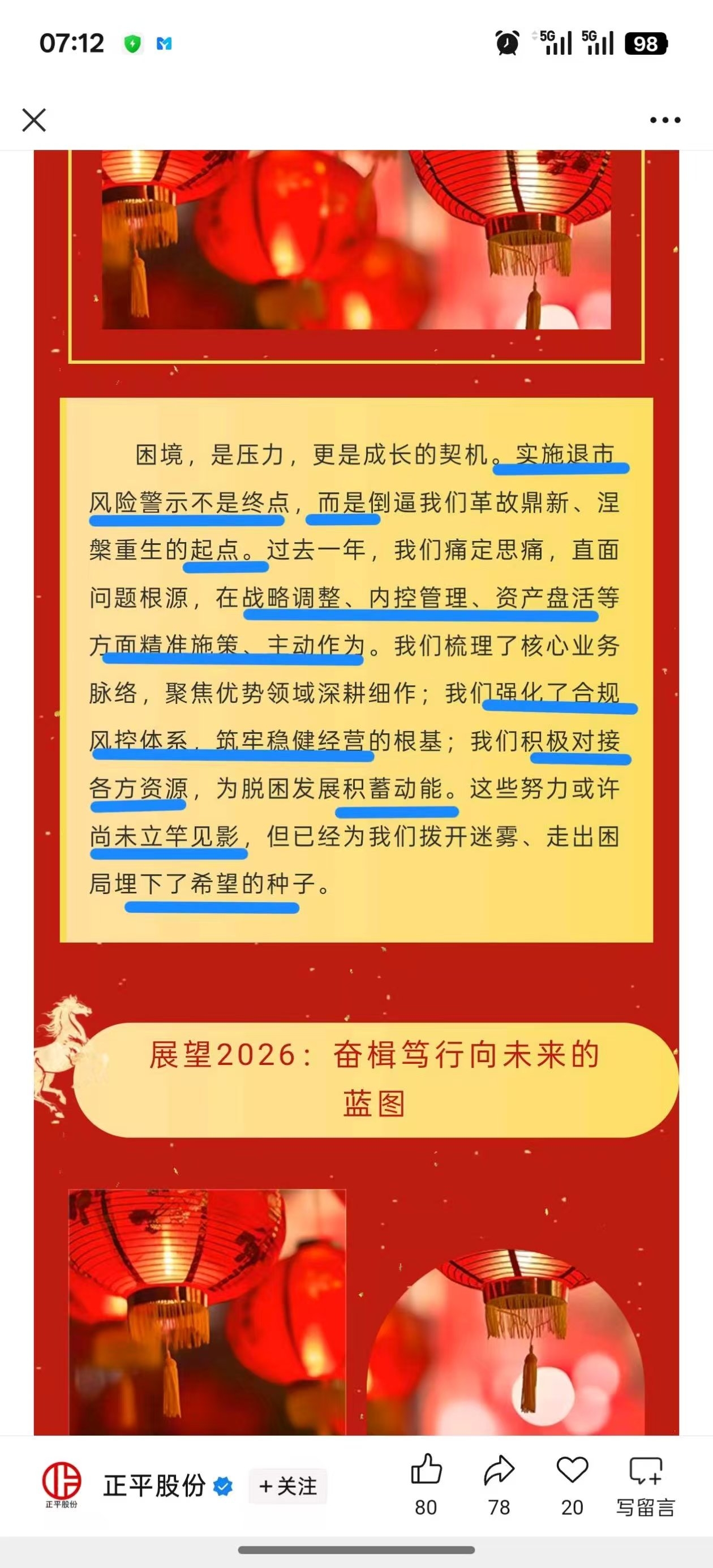 看到说非标退市的,说净资产为负退市的!有谁还记得元旦正平公司发的新年展望吗?